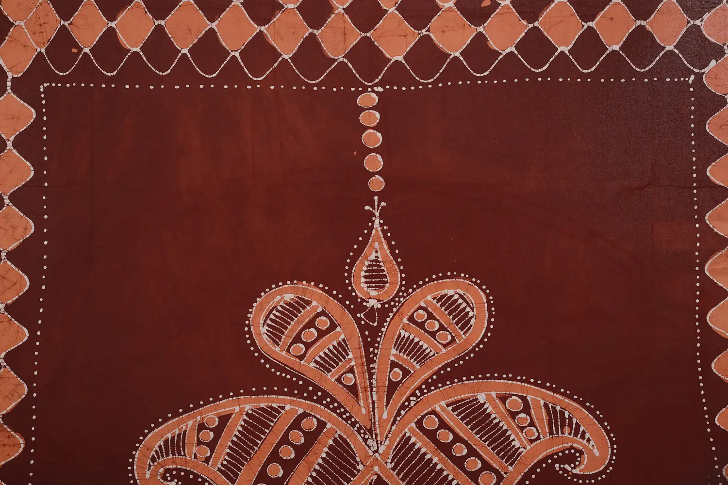 The focal point of this bedspread is its exquisite batik design. A central, stylized floral motif explodes with intricate details, showcasing the artisan's mastery of the batik technique. The delicate lines and carefully placed dots create a mesmerizing effect, drawing the eye and adding depth to the piece. The surrounding border features a printed check pattern in a contrasting shade, adding a touch of geometric intrigue and complementing the central design beautifully. Subtle paisley accents are woven into the design, adding another layer of visual interest and reinforcing the bedspread's connection to traditional Indian textiles.