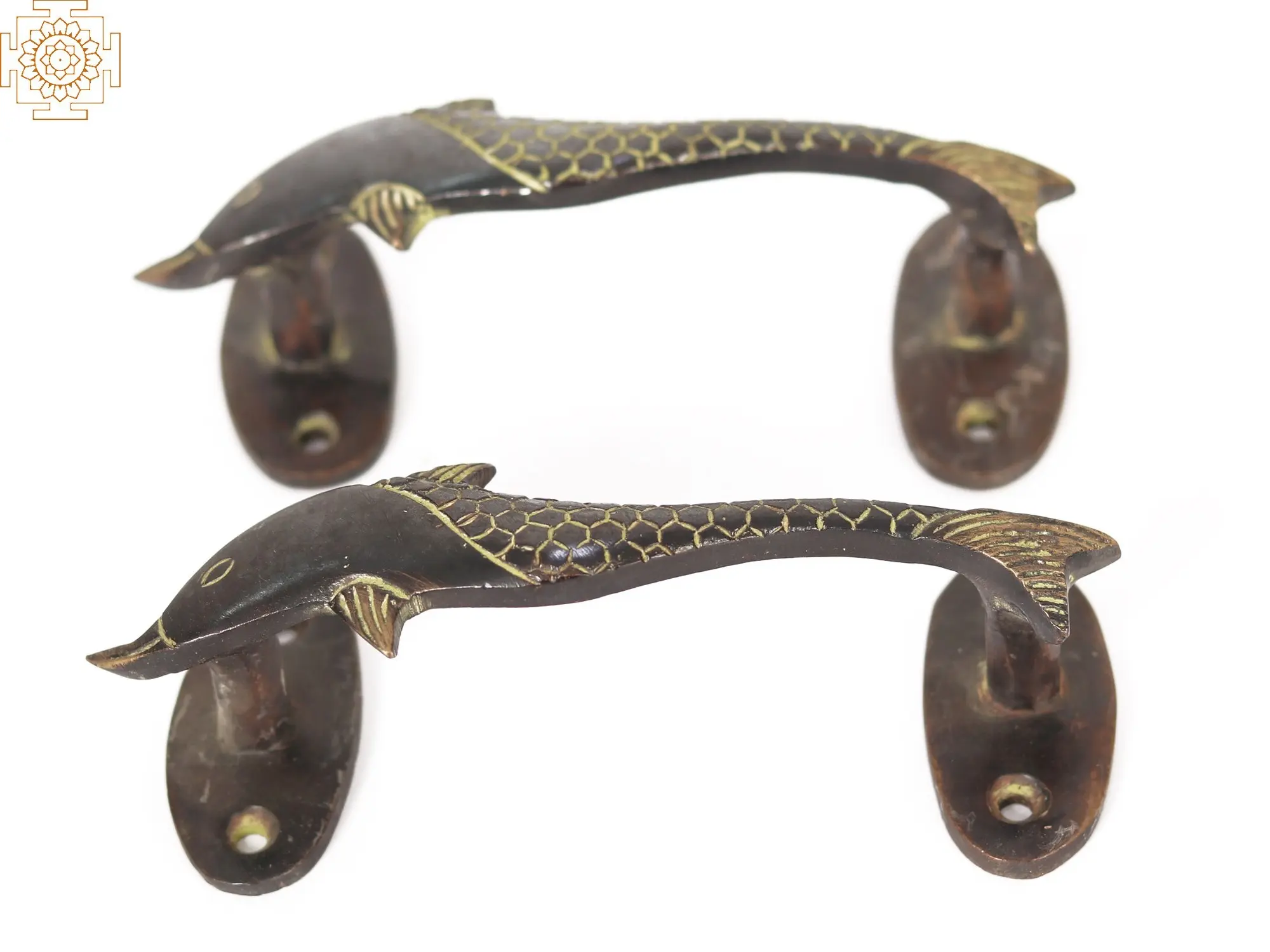 This unique brass door handle is the right combination of flair and inventiveness. A pair of meticulously made dolphins with flowing curves and joyful smiles are featured in the design. The clever usage of black and gold colouring creates a retro vibe. Each dolphin acts as a handle, offering a secure grasp for easy door opening and shutting. The sculpture captures the essence of these intelligent and compassionate creatures, adding a touch of marine fascination to your house. With delicately carved scales, the designer has surpassed all levels of perfection. This door handle is a must-have for everyone who appreciates unusual design.