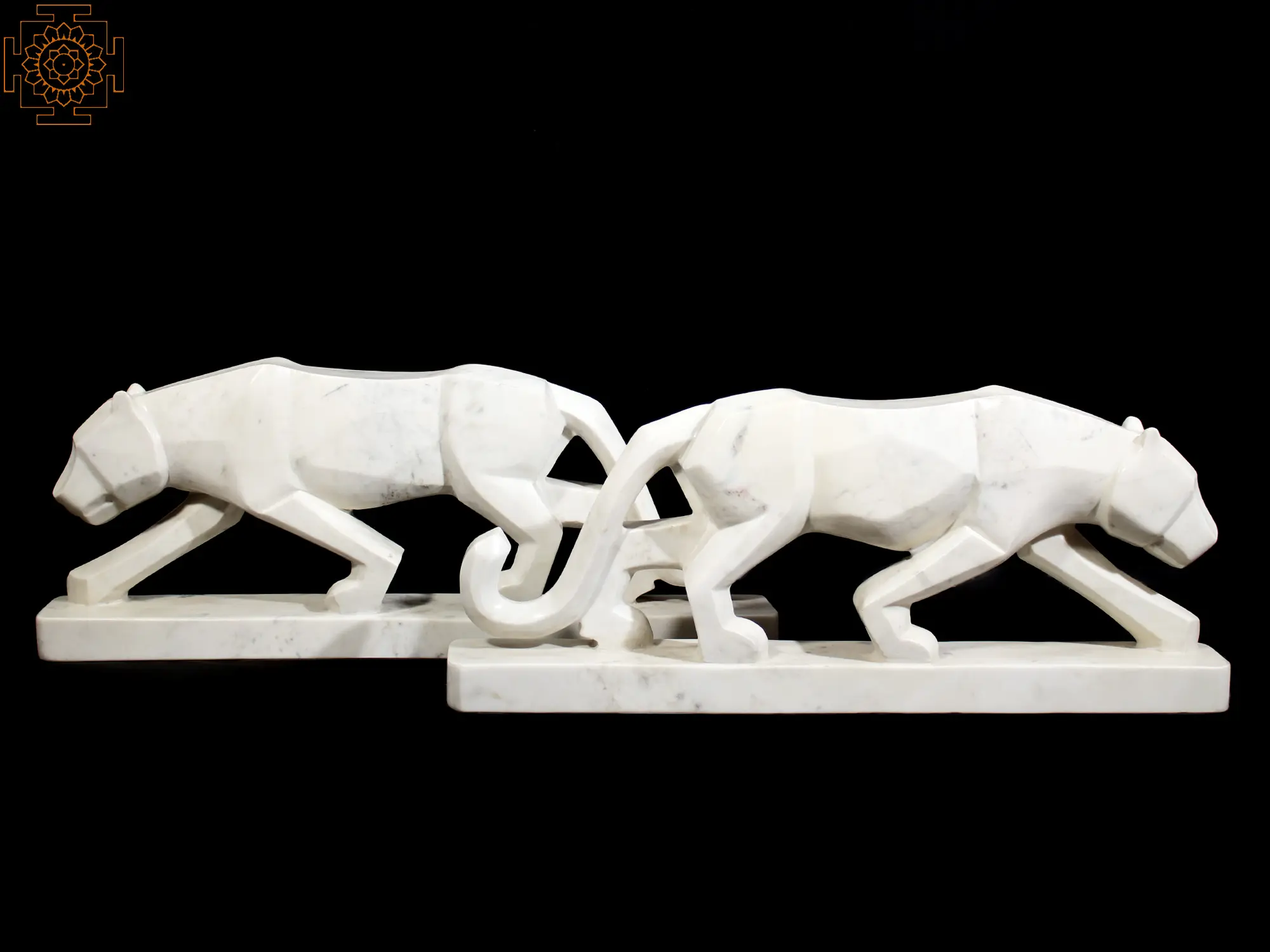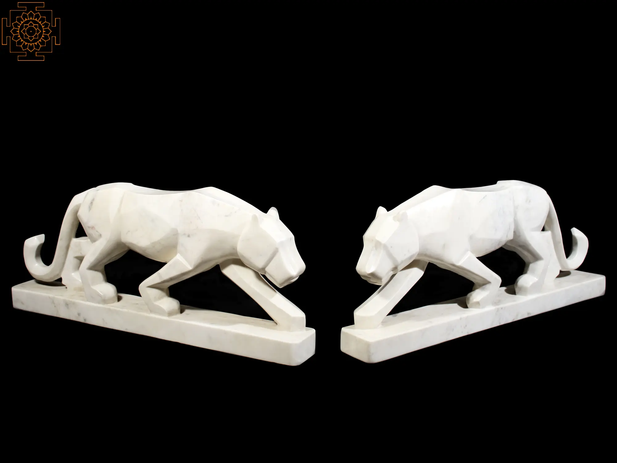 This pair of panther figurines made of saturio marble from Italy serves as a decorative piece that exemplifies the concepts of power and strength. The simplicity of the art, characterized by plain lines and sharp features, conveys a sense of elegance and focus. The finely depicted posture of the panthers accentuates their inherent power, evoking a feeling of awe and respect. These figurines symbolize the primal instincts and untamed nature within each individual, reminding us of the latent potential and inner strength that lies within. Through their presence, the panther figurines inspire us to tap into our own reservoirs of power, assertiveness, and resilience, encouraging us to embrace our innate abilities and face challenges with determination.