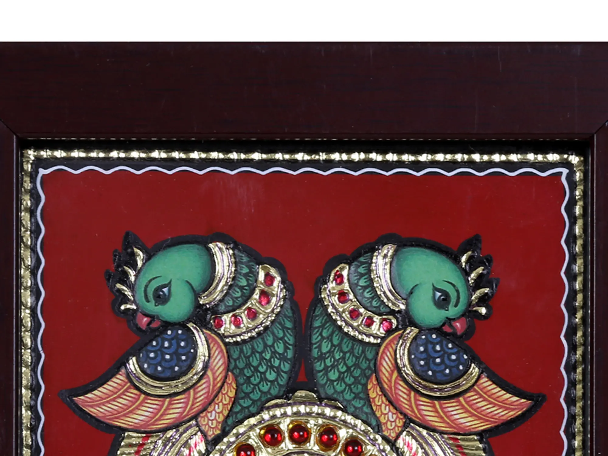 In Indian tradition, parrots hold a special significance, symbolising knowledge and communication. This exquisite Tanjore artwork features a pair of playful parrots perched upon a golden chakra. The chakra, depicted with intricate details and shimmering gold foil, represents the energy centres within our bodies. The parrots, vibrant and full of life, symbolise the flow of knowledge and wisdom that awakens these centres. This captivating piece serves as a reminder that true knowledge transcends mere facts and figures.