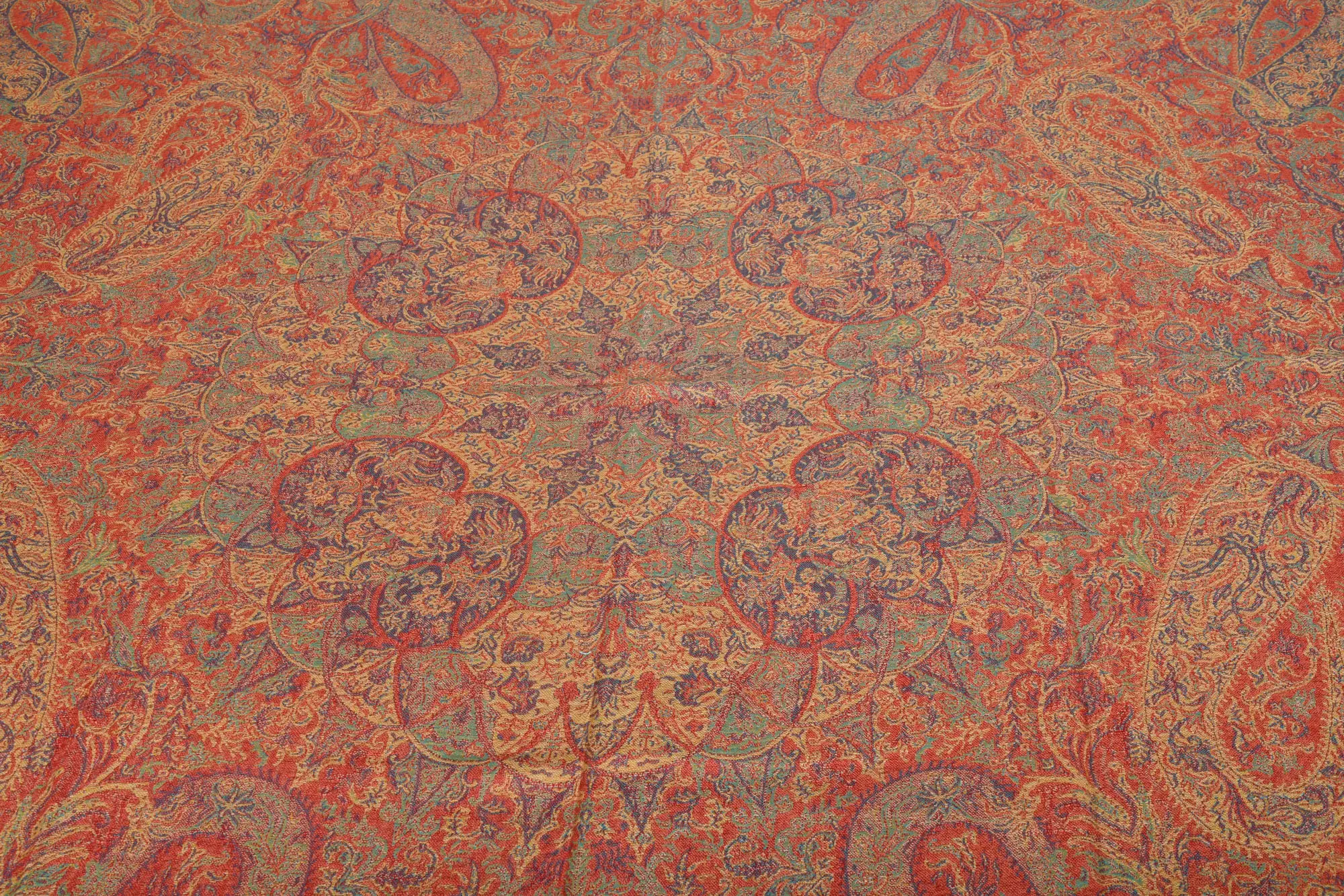 Pastel-Colored Reversible Jamawar Sofa-Throw with Woven Paisleys