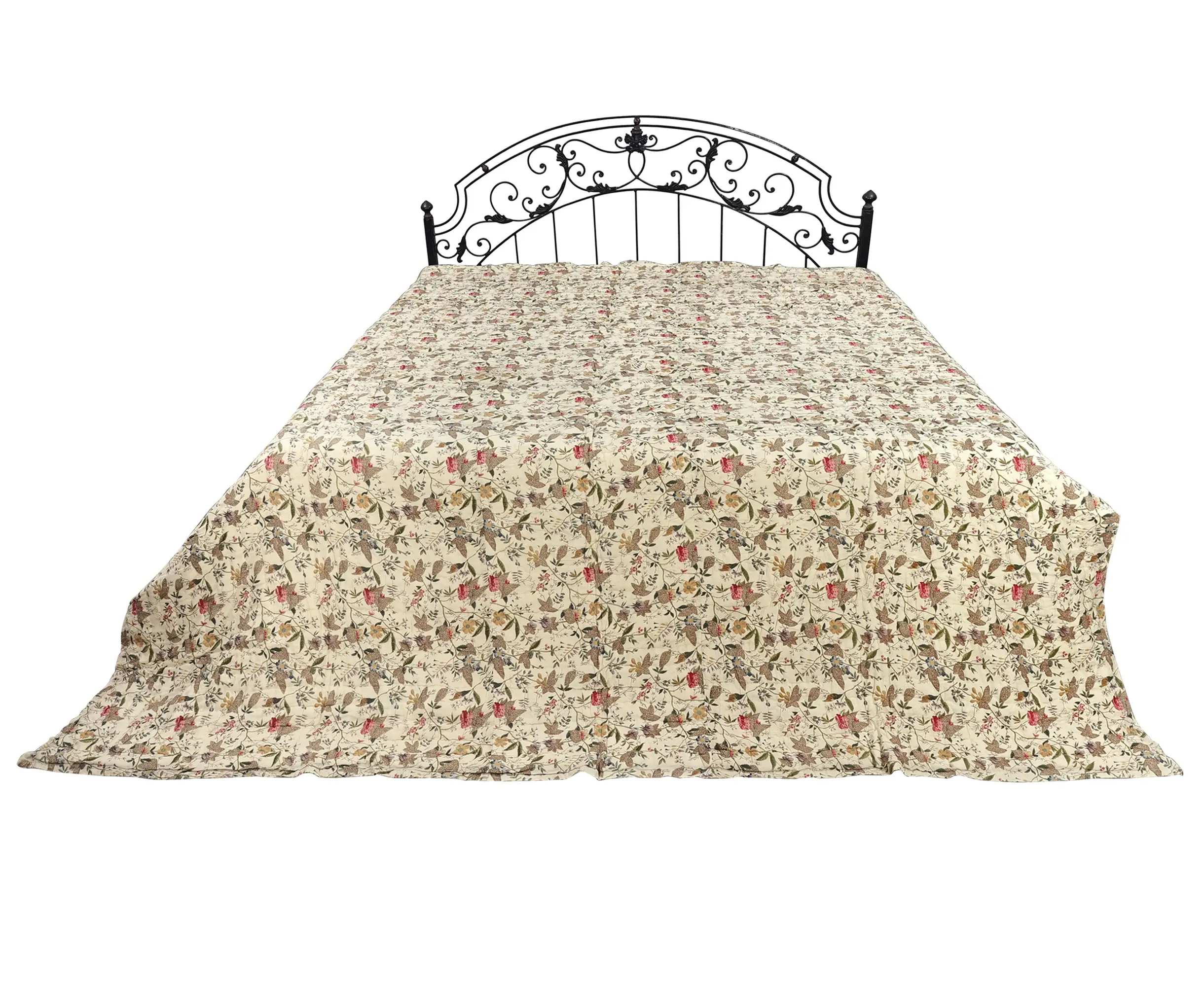 Lily-White Reversible Jaipuri Quilt with Printed Floral Vines