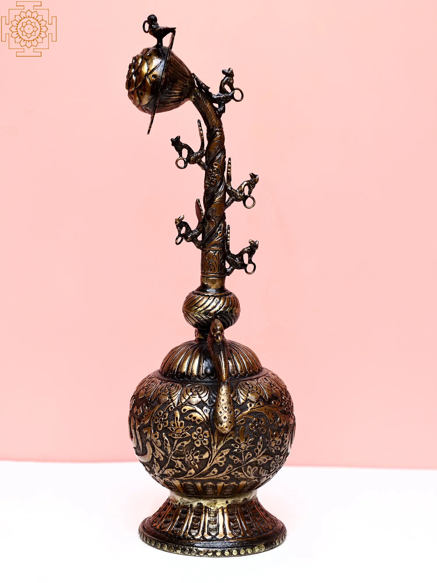 13" Copper Gold Plated Engraved Surahi With Inlay Work | Home Decorative Item