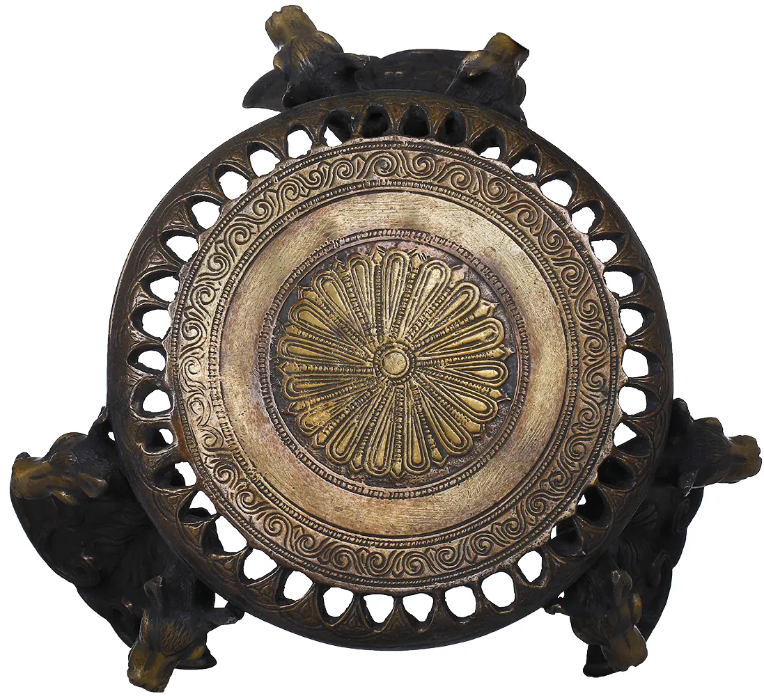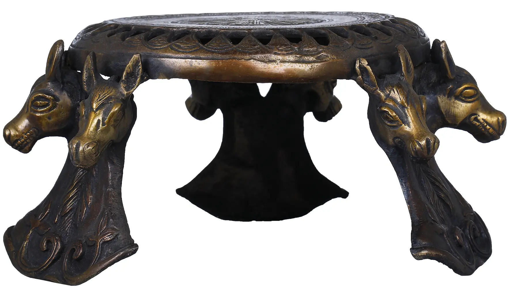 This is not just a stand; it's a symbol of strength and devotion. This unique brass piece is handcrafted in India and features a pedestal supported by horse heads, symbolising power and dedication. Placing your deities or sacred items on this pedestal is a way to honour the strength and grace that they bring to your life. The horse heads represent the energy and enthusiasm that devotees put into their spiritual practices. Embrace this distinctive stand and let it be a testament to the strength and devotion that are at the heart of your rituals.