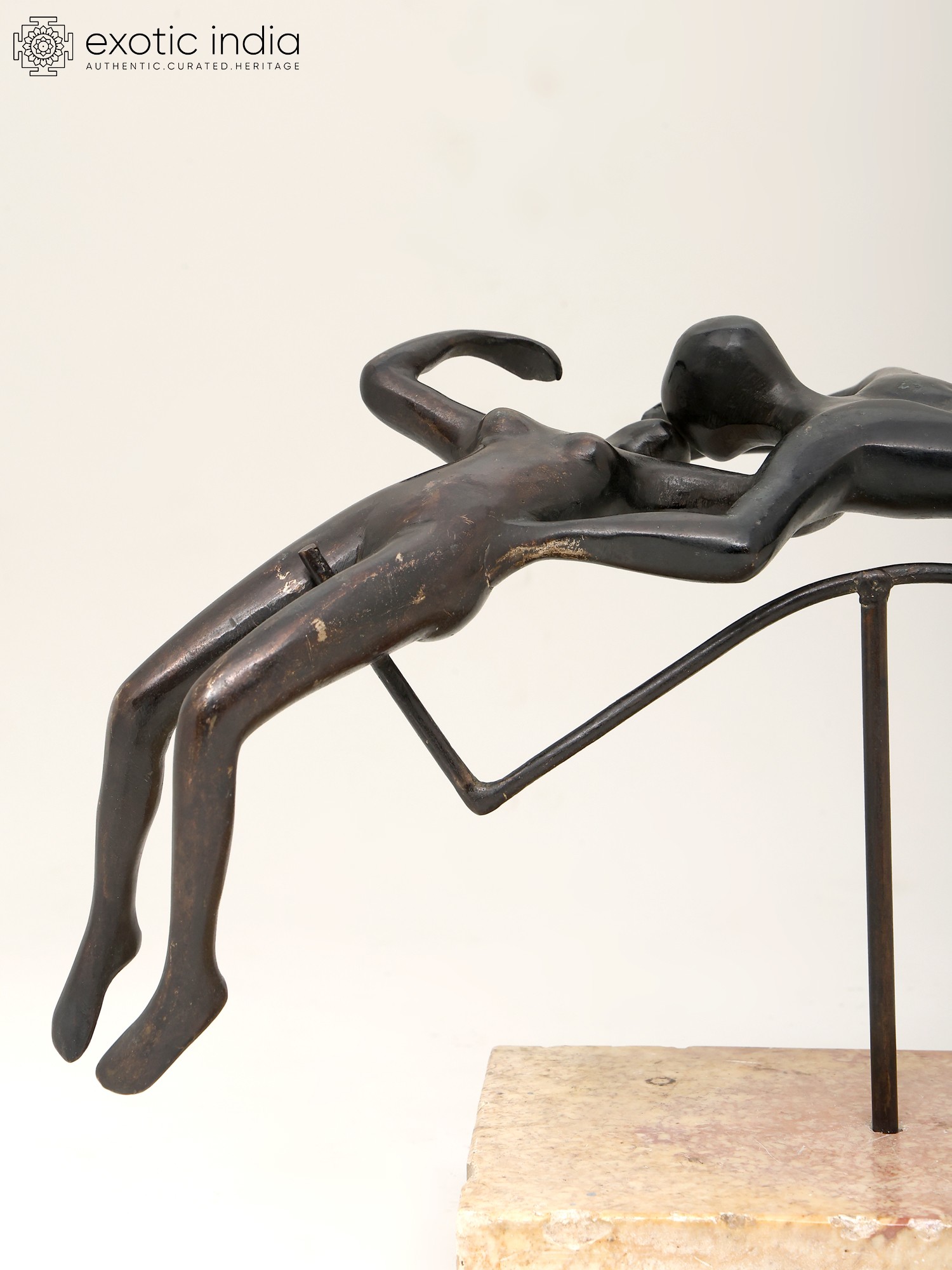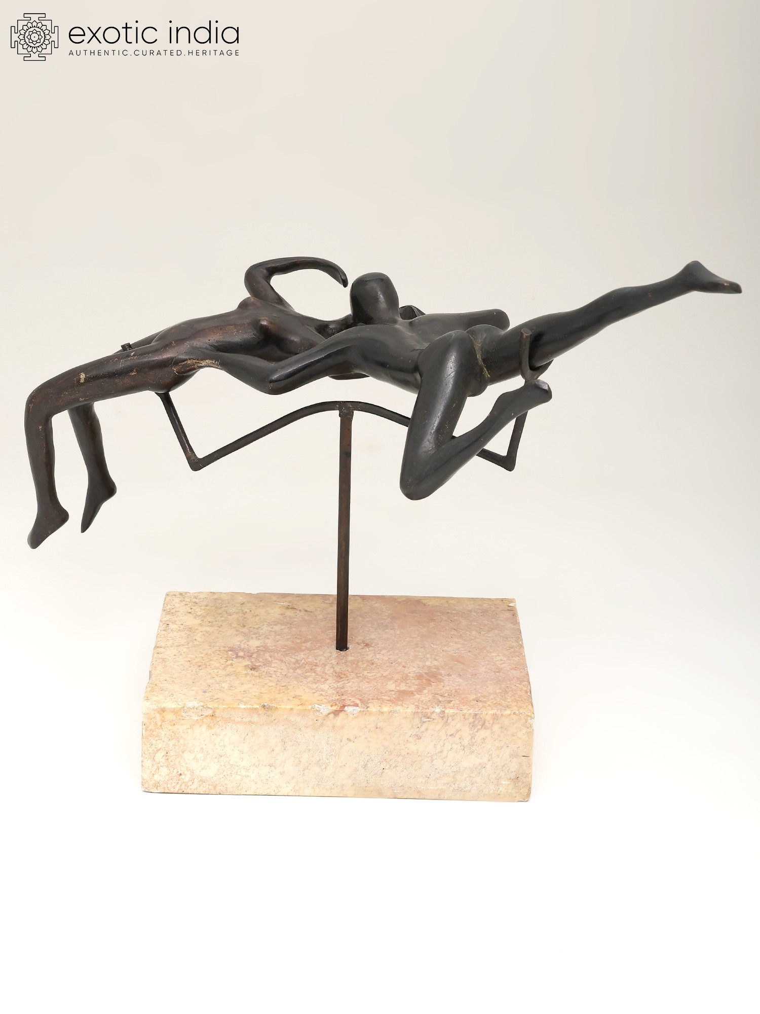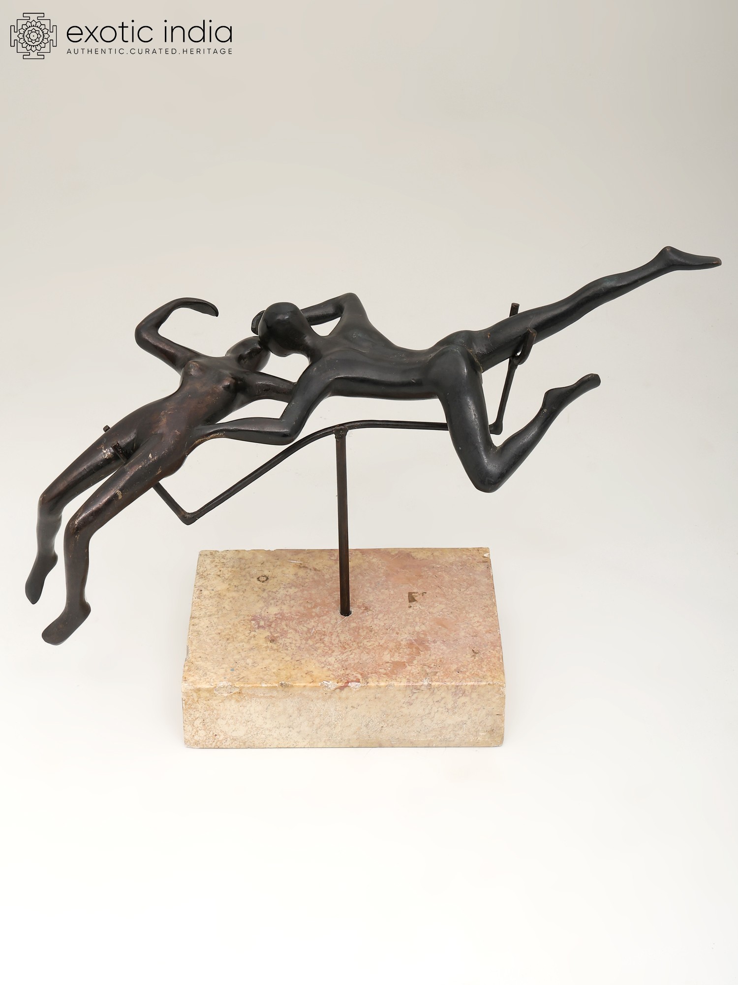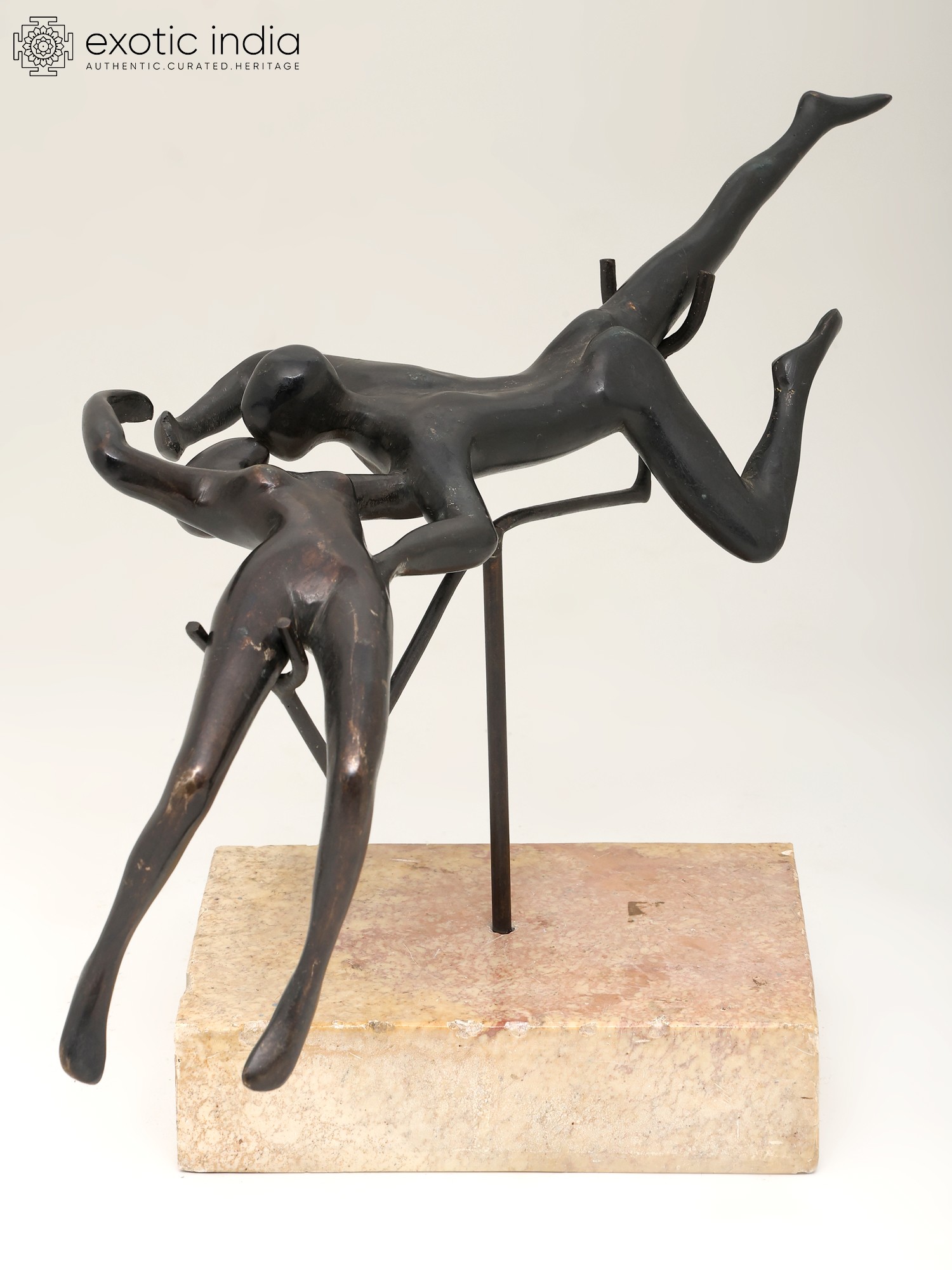 Two figures suspended in the poetry of motion, The Romantic Dance captures the fleeting magic of shared rhythm and human connection. Cast in lustrous brass and balanced on a minimalist stand, this sculpture evokes a weightless duet — where limbs stretch, meet, and dissolve into fluid abstraction.