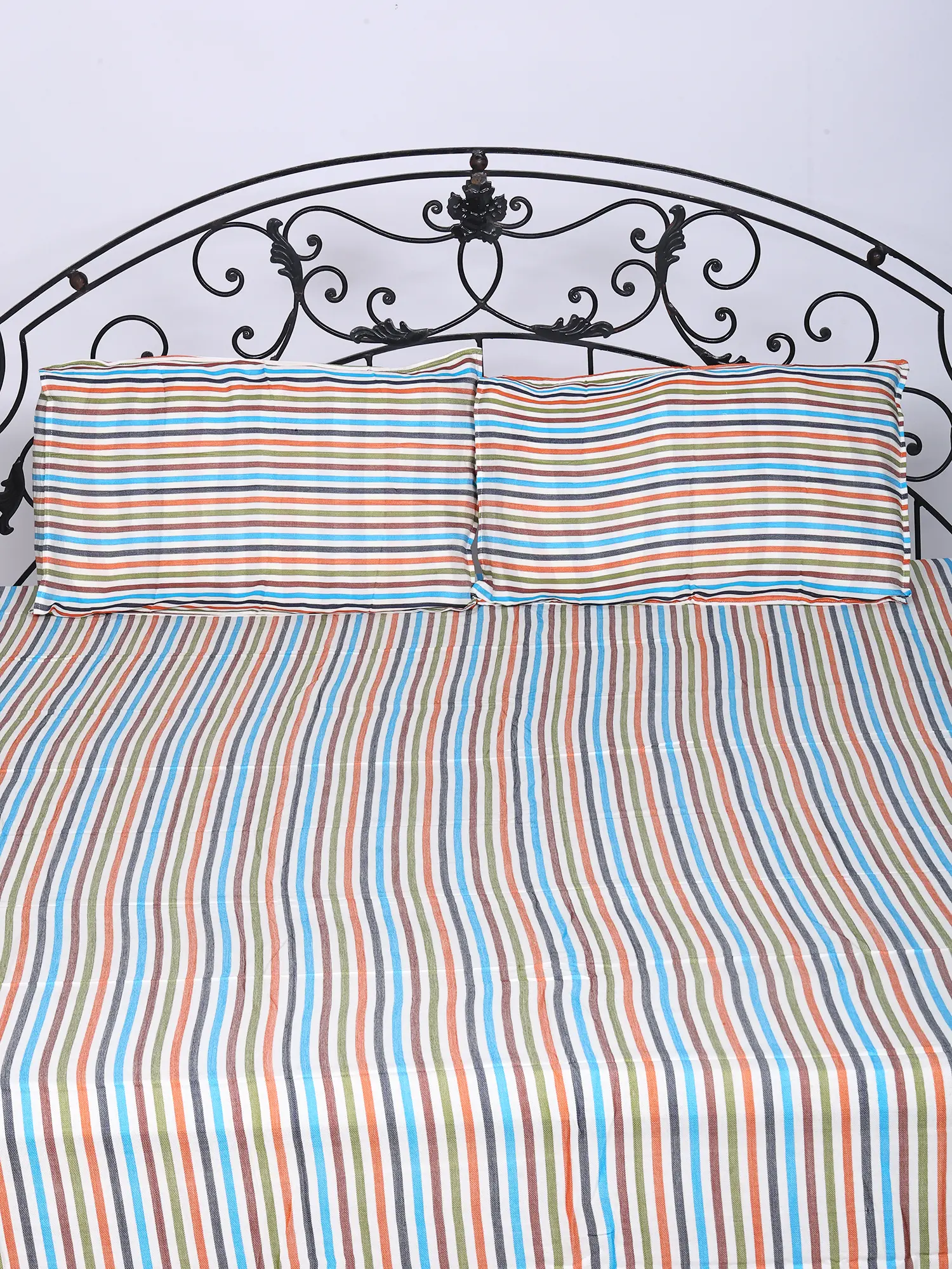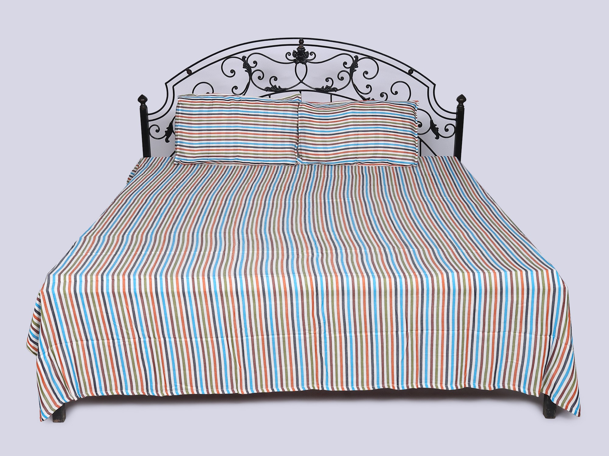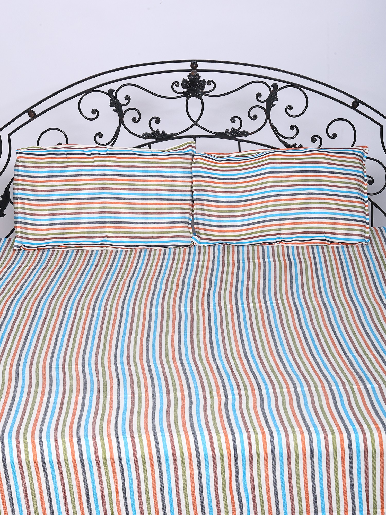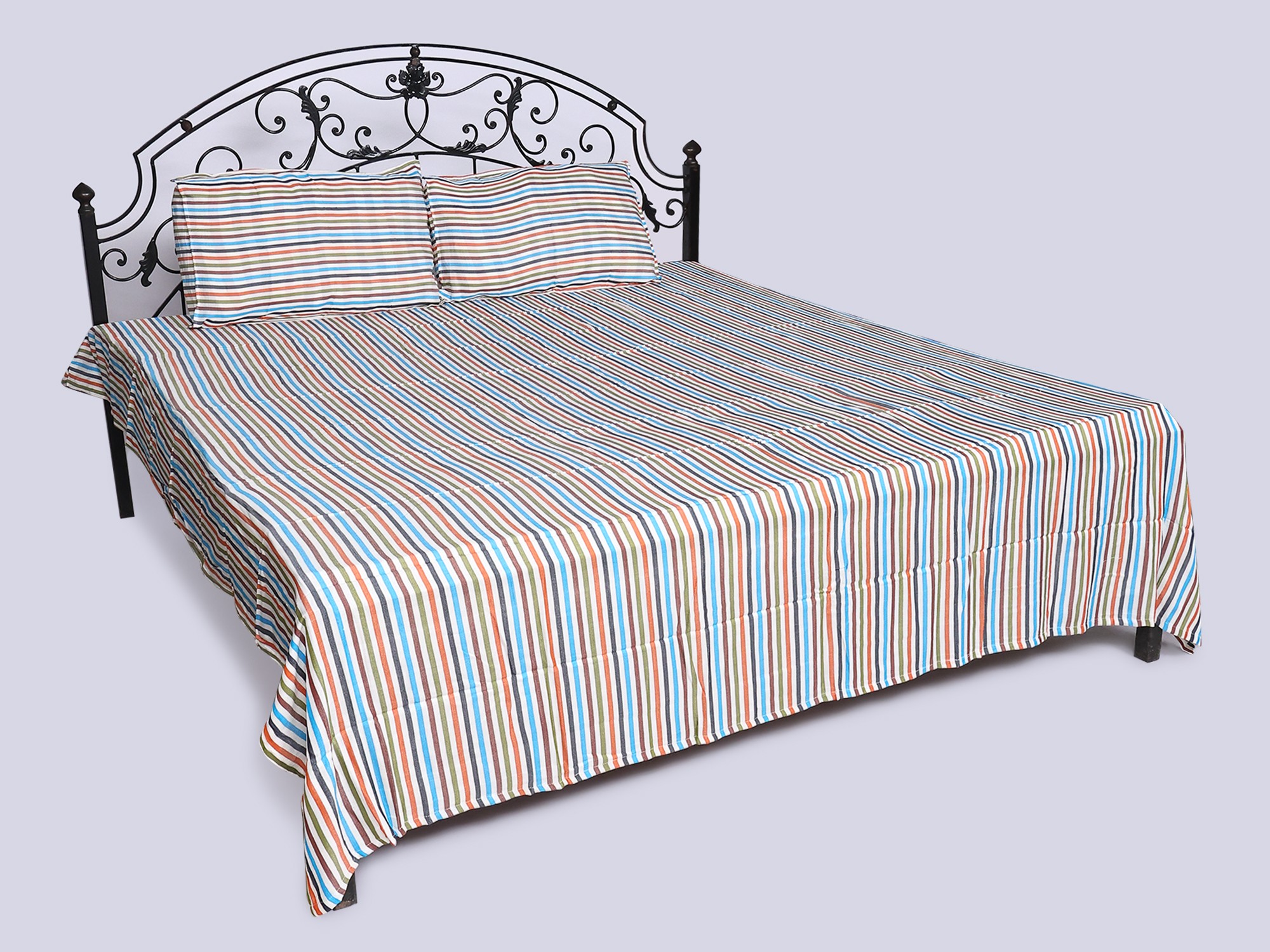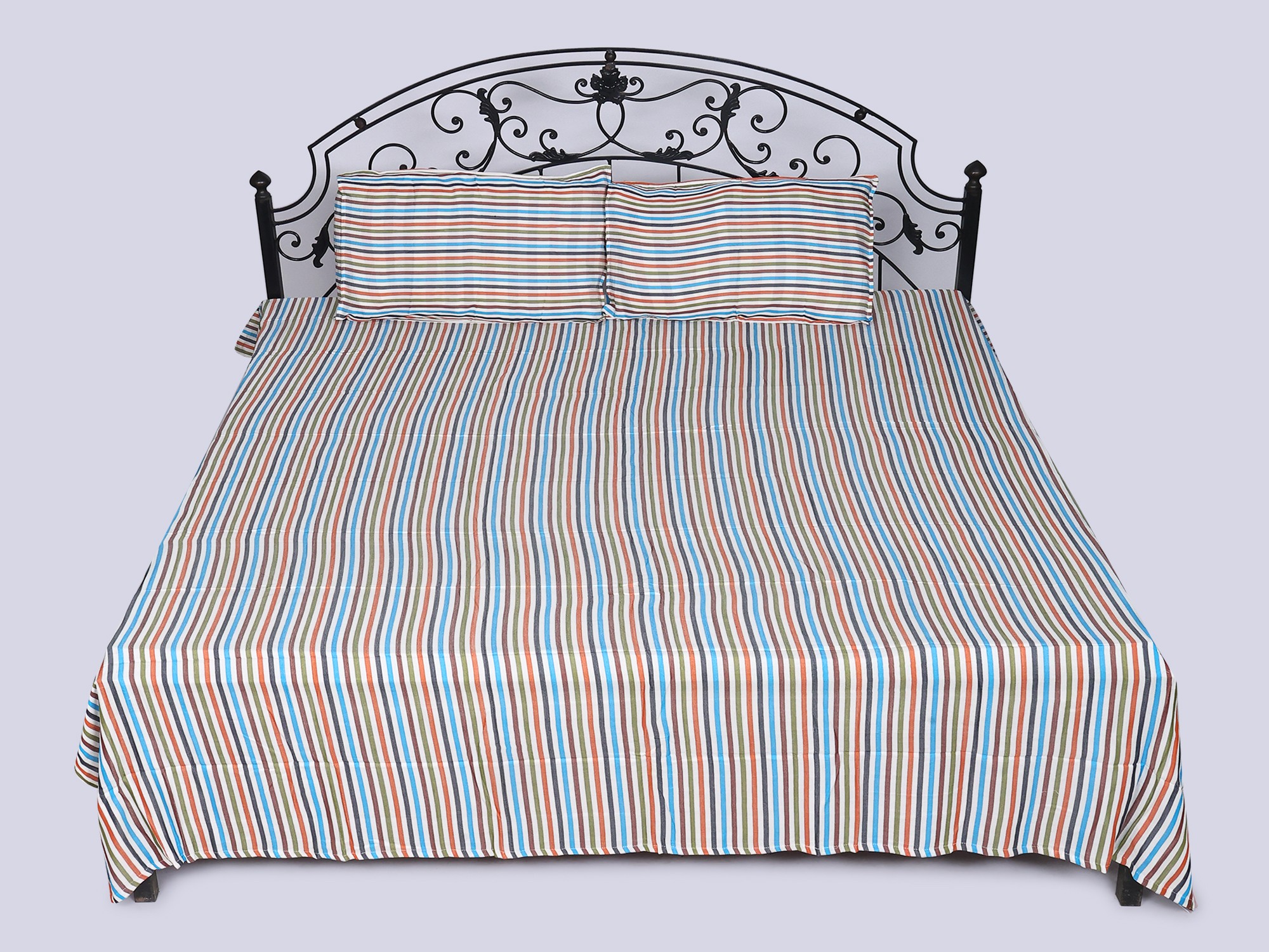 Queen Size Bamboo Bedspread with Pillow Cover and Multicolor Stripes