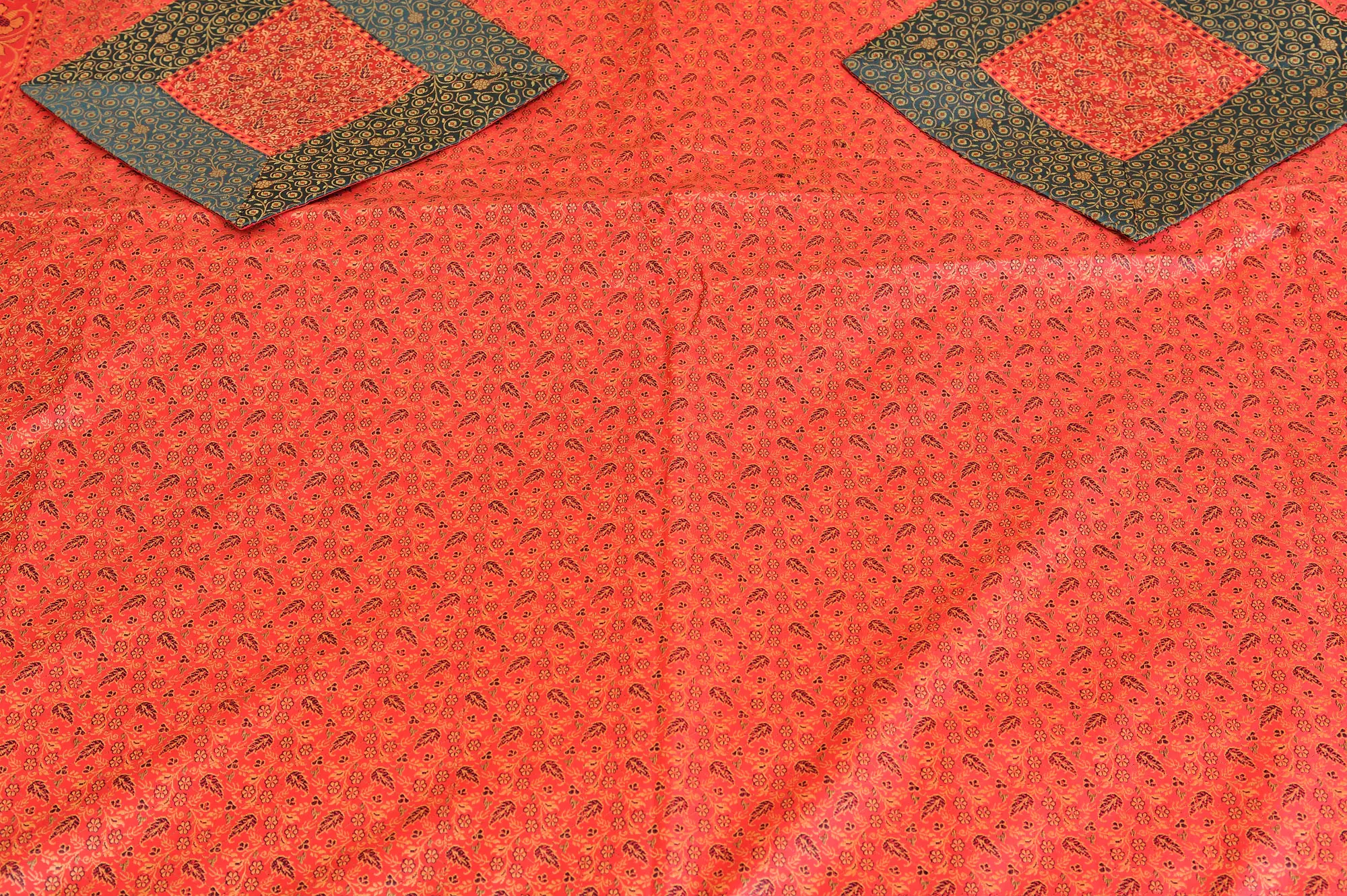 Golden & Red Cotton Color Queen Size Patola Bedsheet with Gold Cypress Tree Pattern Printed and Two Pillow Cover