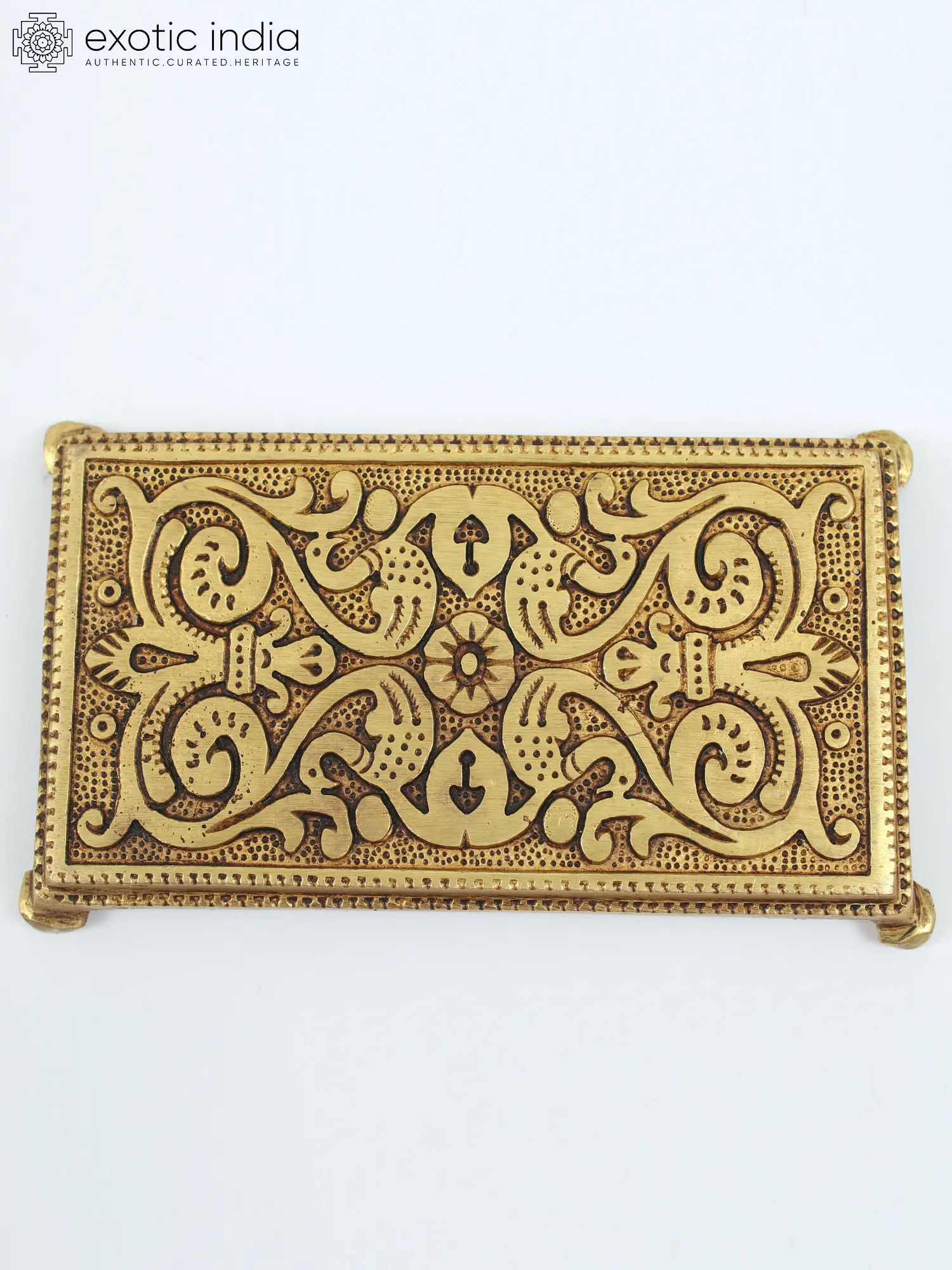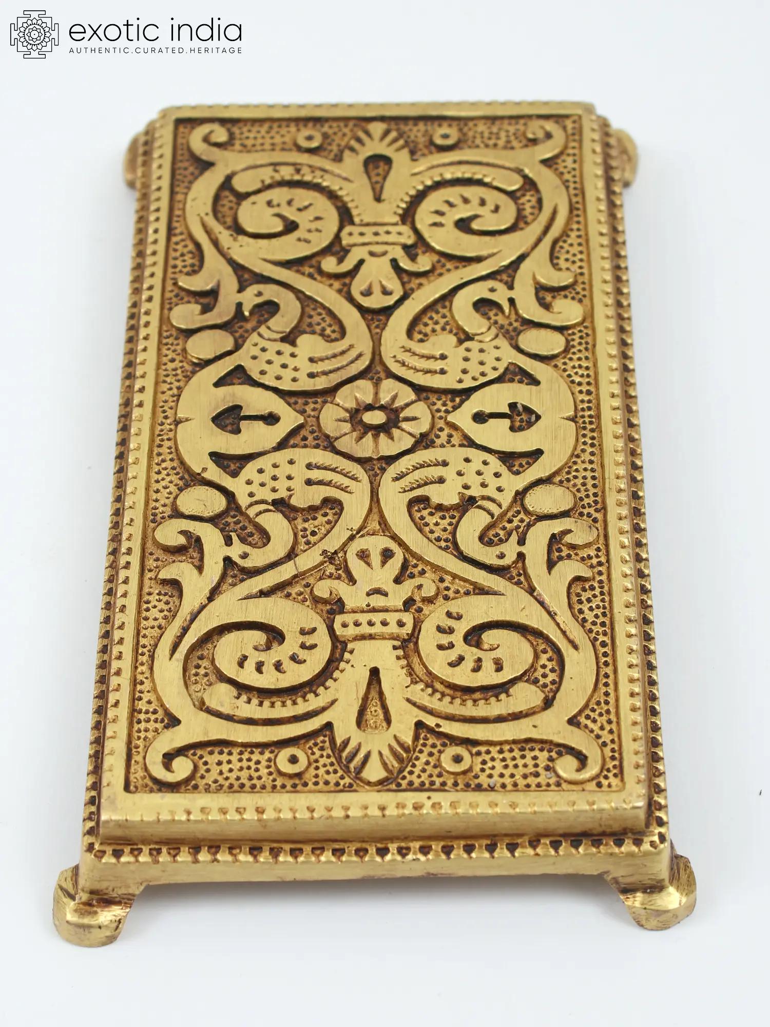 This Rectangular Shape Peacocks Design Brass Chowki/Pedestal is an exquisite piece blending artistry with functionality. Its rectangular form is adorned with intricate peacock designs, reflecting elegance and cultural symbolism. This ornate chowki serves as a divine pedestal for religious idols or ritual items, enhancing the aesthetic appeal of worship spaces. The peacock motif, often associated with spirituality, adds a sacred touch. This brass chowki beautifully combines traditional design elements with practicality, making it a perfect choice for those seeking a refined and culturally resonant addition to their sacred rituals.