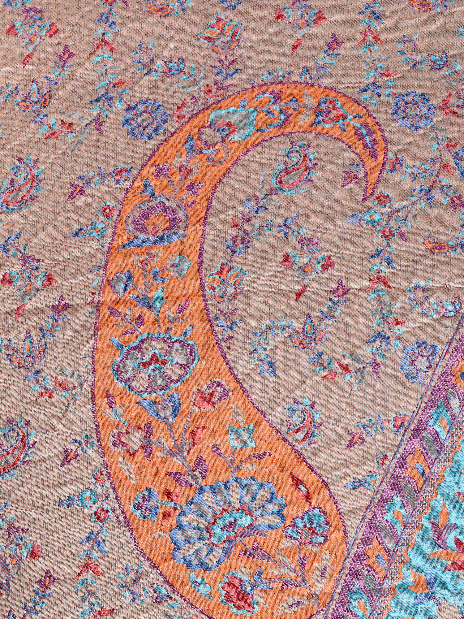 Almond-Milk Reversible Jamawar Queen Size Bedspread with Woven Paisleys