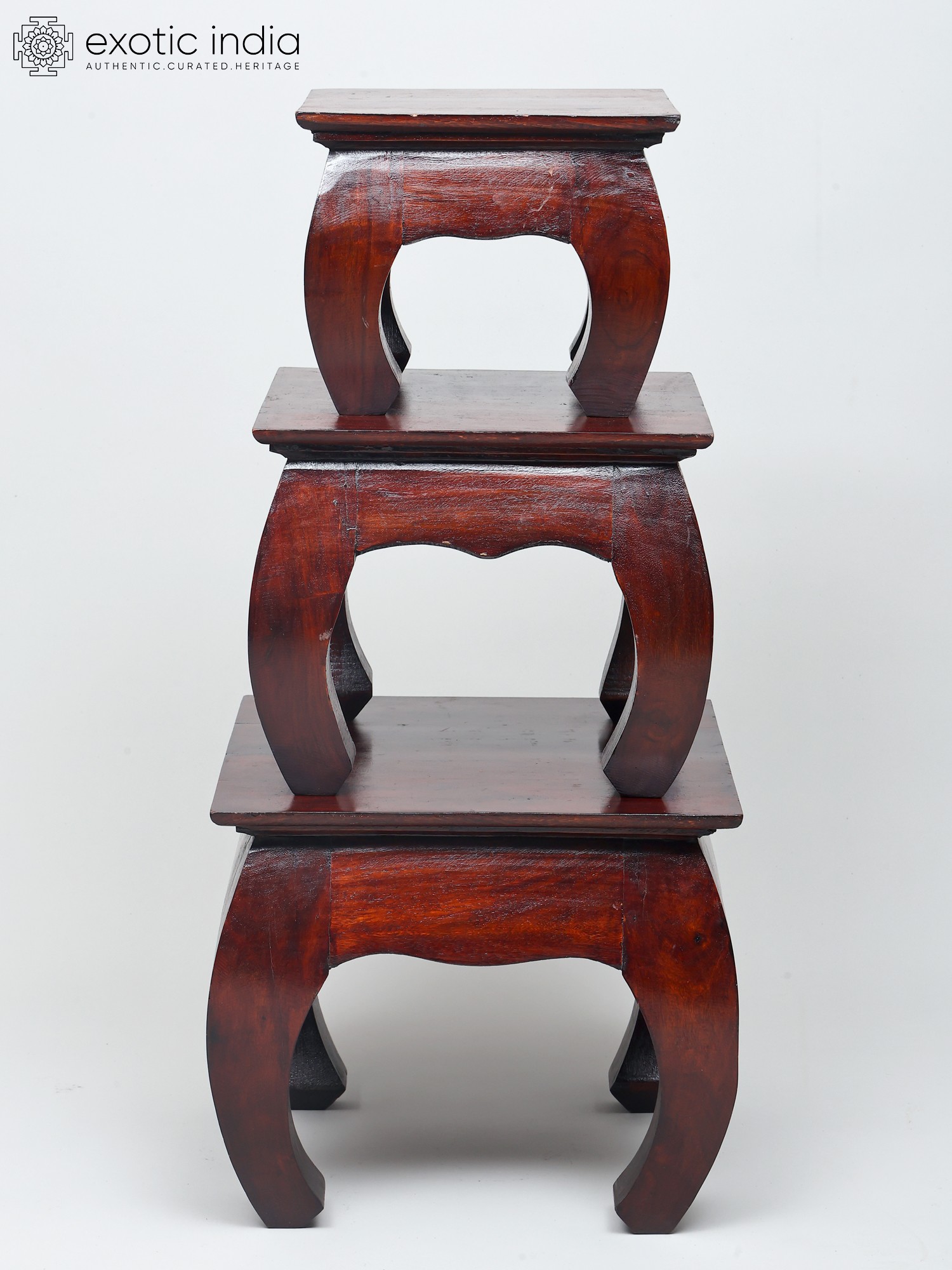 Elevate your space with this Set of 3 Wooden Stools, a perfect blend of functionality and style. Crafted with precision from high-quality wood, these stools exude a timeless charm. The rich, natural finish adds warmth to any room, while their sturdy construction ensures durability. These stools are versatile and space-saving for seating or as stylish accent pieces. Whether gathered around a table or scattered throughout your living space, this set effortlessly combines practicality with aesthetic appeal, making it a must-have addition to your home decor.