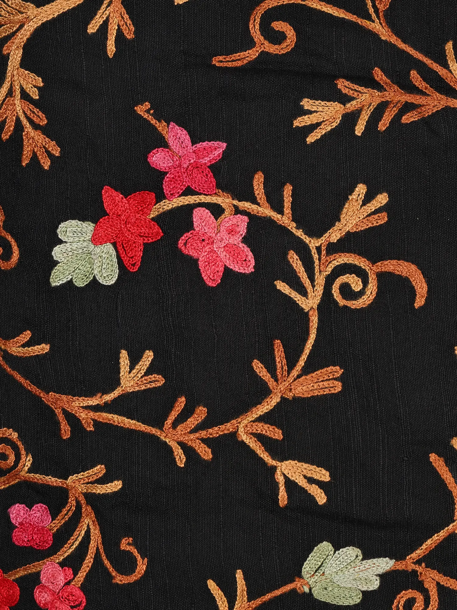 These covers are born from the skilled hands of Kashmiri artisans, who meticulously adorn a luxurious art silk base with the traditional Ari embroidery. Each stitch is a testament to generations of craftsmanship, ensuring a unique and high-quality finish. The rich, flowing motifs are carefully applied, creating a tactile and visual experience that speaks of true dedication.