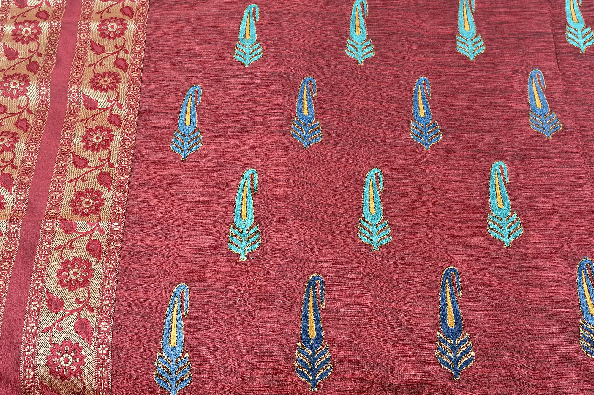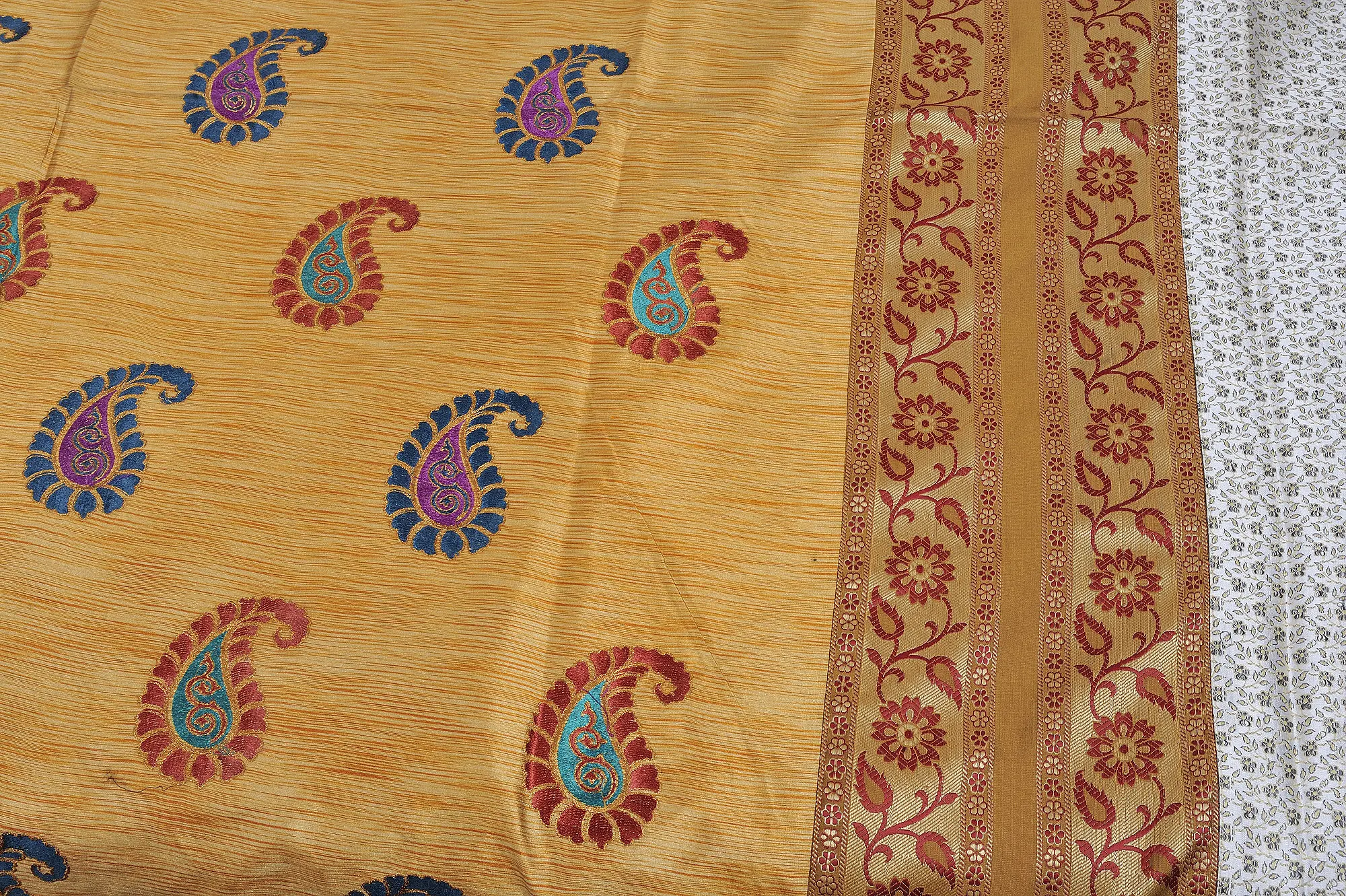 The Seven-Piece Banarasi Bedspread is a symphony of opulence and artistry. This premium set features intricate floral weaves and embroidered paisleys that transform your bedroom into a canvas of elegance. Crafted with precision, it offers not just a bedspread but a luxurious experience. Drift into the world of dreams, enveloped in the comfort and beauty of Banarasi craftsmanship. Each piece can be used to adorn your bed, while the entire set adds an air of grandeur to your space. Embrace the luxury of this bedspread, where every sleep is a dream in the lap of art and comfort.