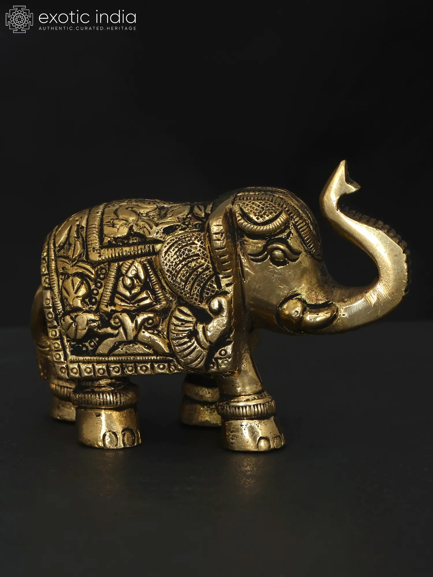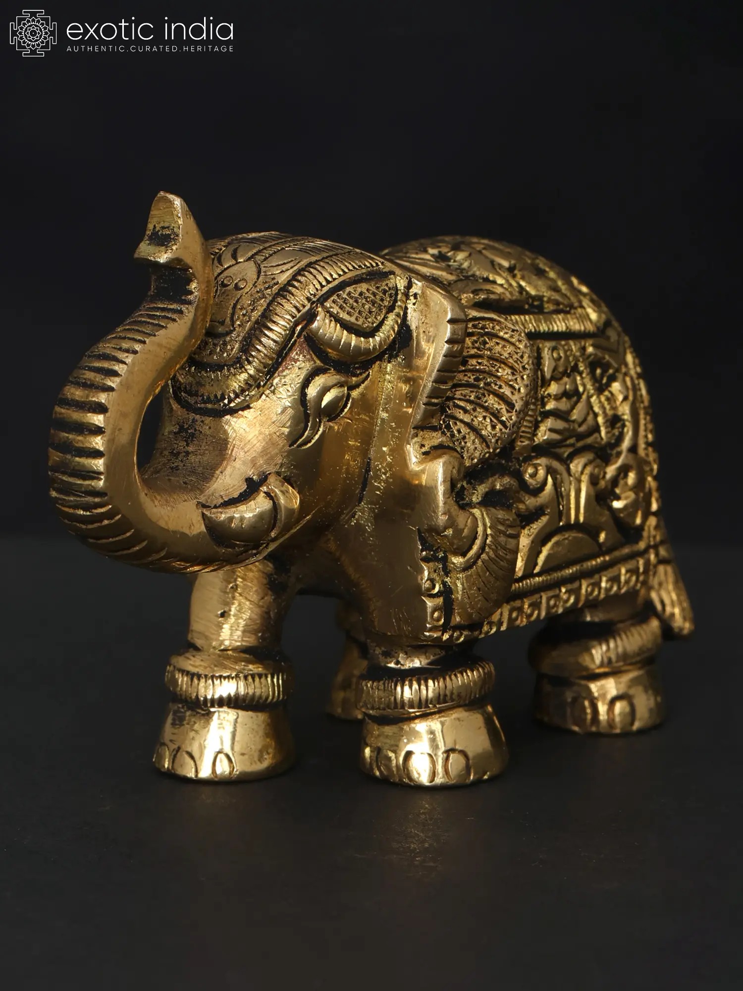 Bring a touch of exotic elegance to your home with this exquisite 3-inch brass elephant statue. Meticulously crafted, this figurine is more than just a decorative piece; it's a captivating work of art that embodies the rich cultural heritage of India. The elephant, a symbol of wisdom, strength, and good fortune in many cultures, is depicted with its trunk raised high, signifying the invitation of prosperity and abundance. The intricate detailing on its body, including ornate patterns and carvings, speaks to the dedication and skill of the artisans who brought it to life. This small but mighty elephant is sure to be a cherished addition to any space.