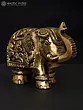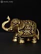 This brass elephant statue isn't merely a mass-produced item; it's a handcrafted piece that showcases the artistry of skilled artisans. Each curve, each line, each intricate detail is carefully etched, revealing the passion and precision invested in its creation. The deep, rich gold tone of the brass adds to its magnificence, gleaming under any light source. The statue's surface boasts a detailed and textured finish showcasing the traditional motifs, reflecting a legacy of artistic excellence passed down through generations. Notice the carefully rendered features, from the elephant's expressive eyes to the delicate carvings adorning its body. This is a testament to the enduring spirit of traditional craftsmanship.