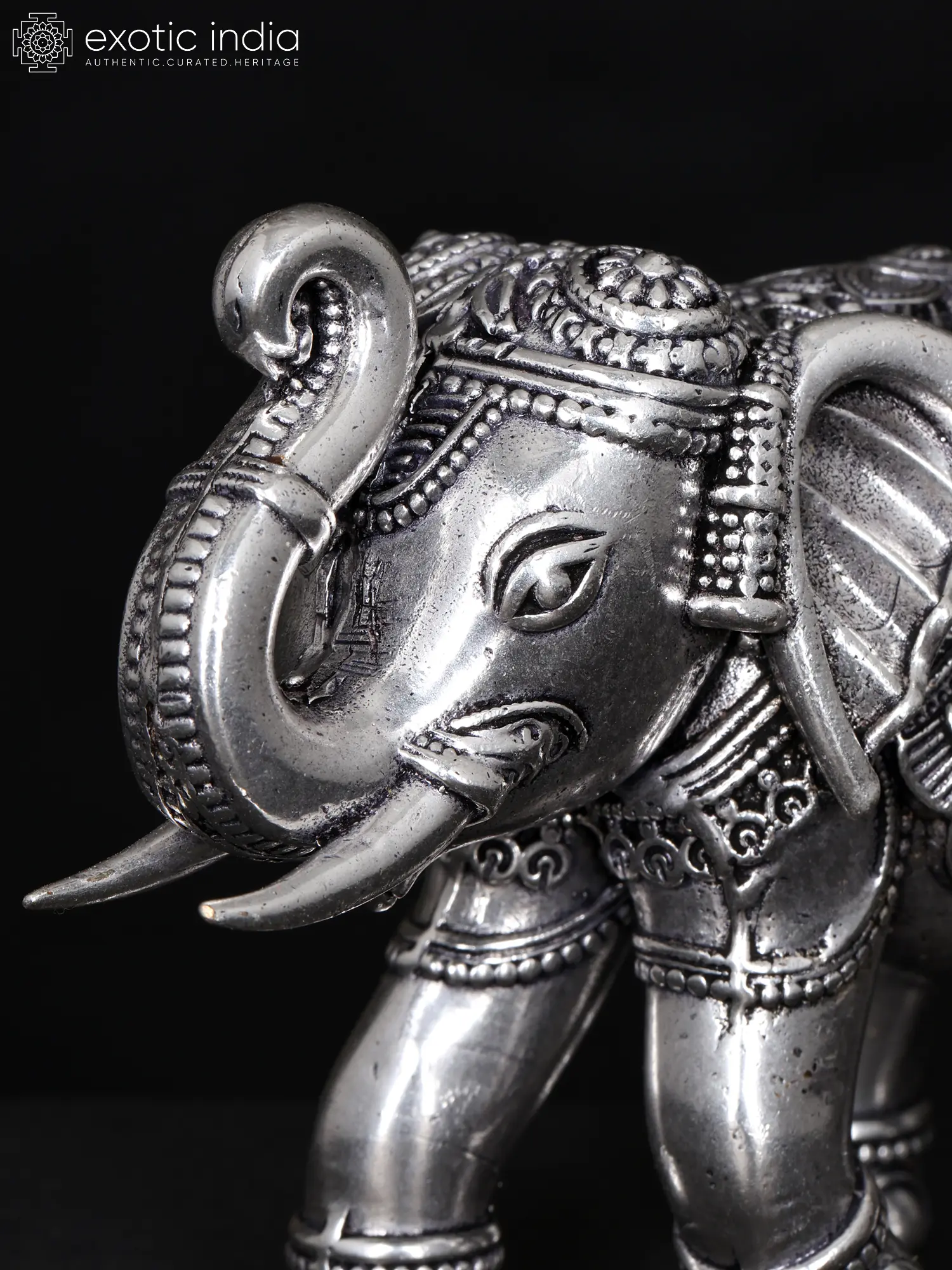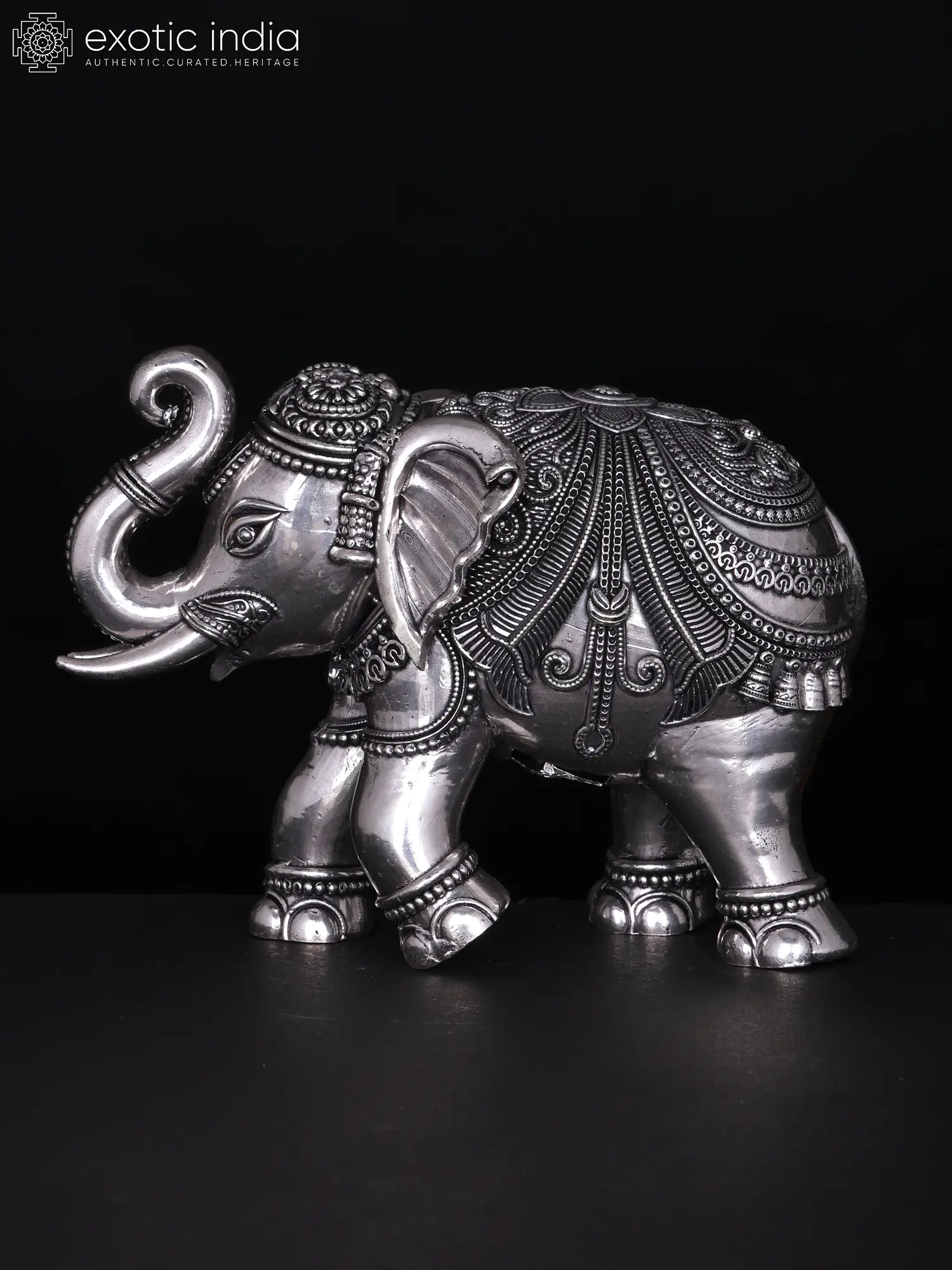 Every curve and contour of this elephant statue has been carefully considered. The intricate designs adorning its howdah feature delicate patterns and motifs reminiscent of traditional Indian artistry. Each element, from the delicately carved trunk to the expertly crafted feet, reflects the dedication and skill of the artisans who brought this piece to life. The silver plating complements the brass base, providing a lustrous sheen that catches the light and adds to the overall grandeur of the figurine.