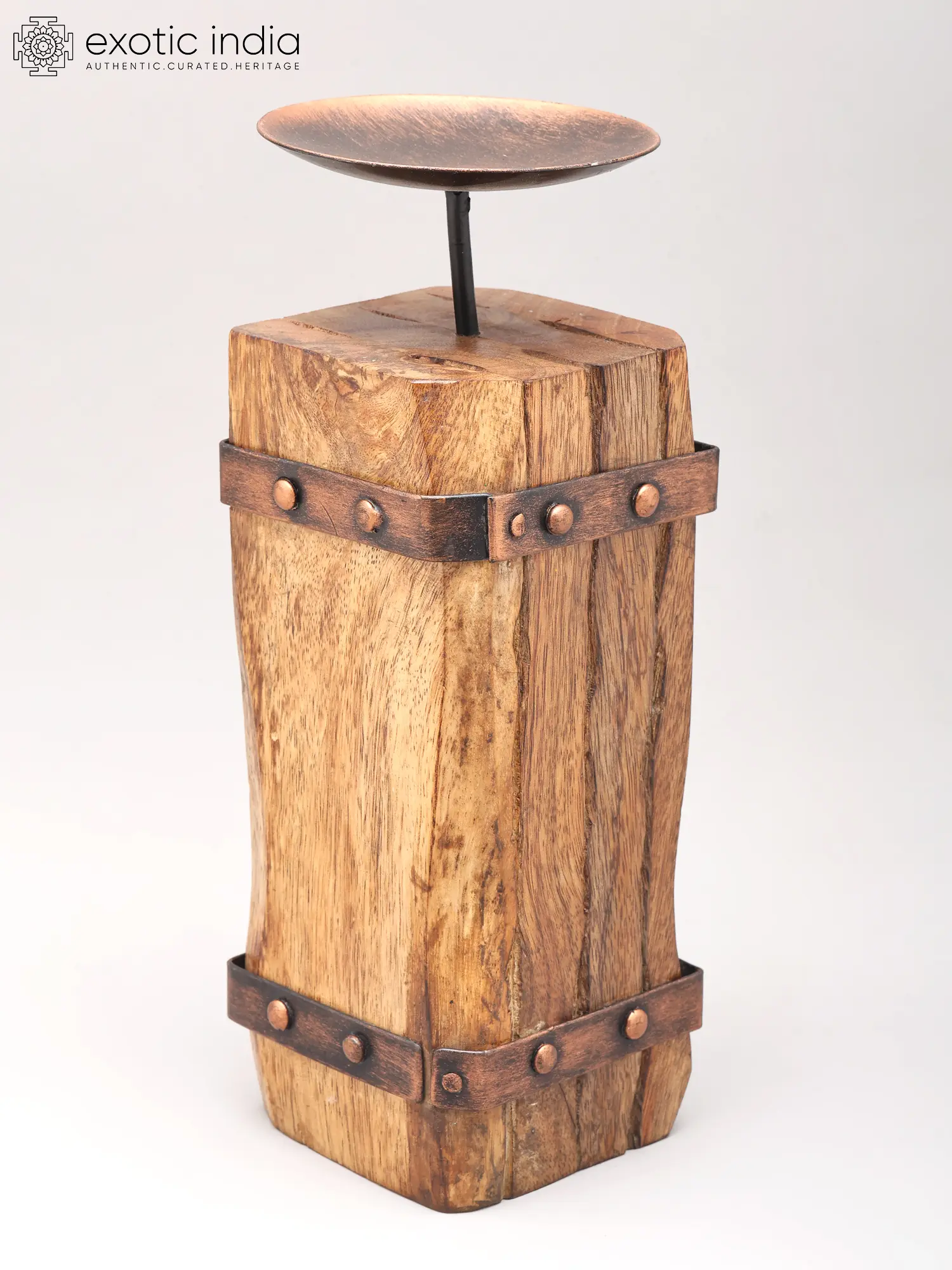 Features a solid wood block base for stable candle placement.