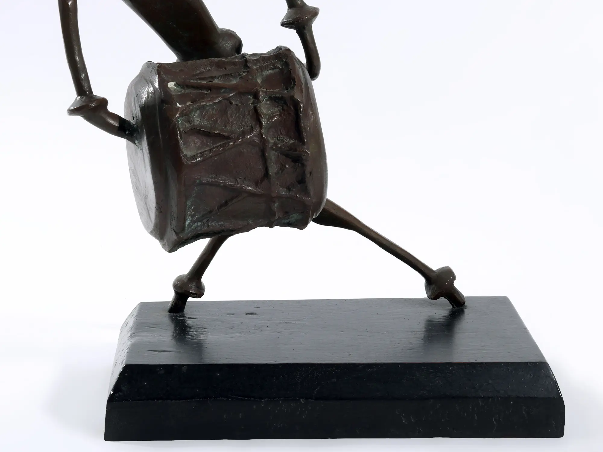 A snapshot of rhythm and vitality, this handcrafted bronze sculpture captures the dynamic posture of a tribal drummer mid-performance. With legs wide in stride and arms extended in motion, the figure becomes a visual echo of the beats it produces- raw, festive, and alive.