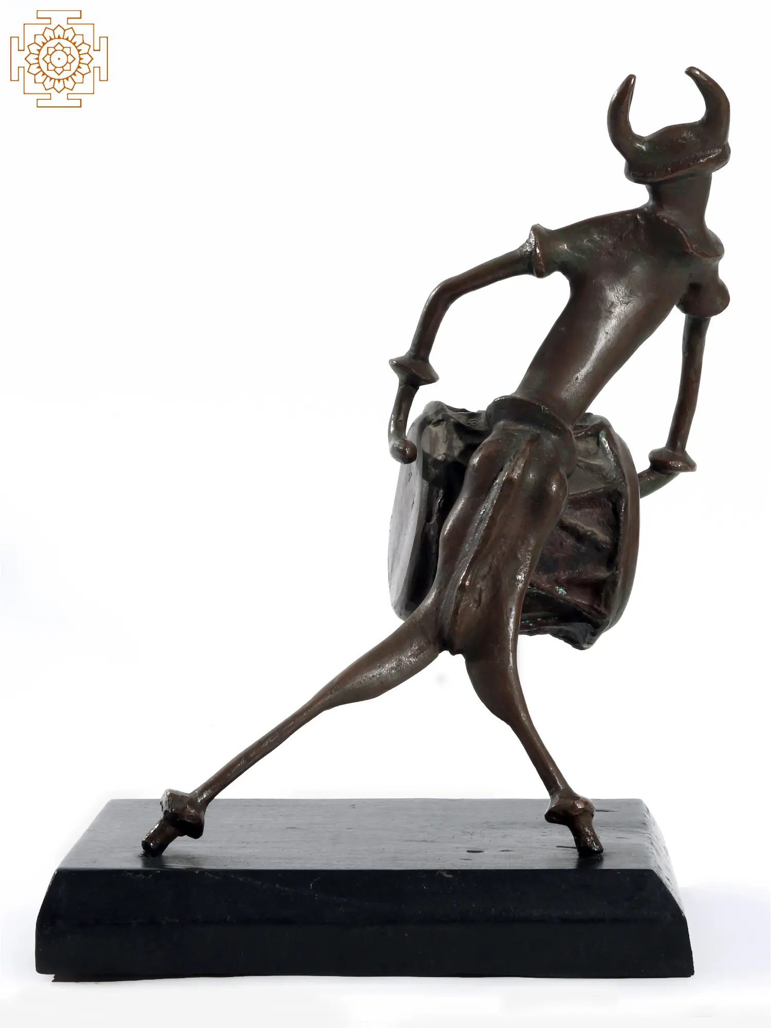 Stylized with elongated limbs and minimalist form, the sculpture pays homage to India’s tribal traditions where music, dance, and celebration are inseparable from daily life. The horned headgear adds a dash of cultural identity, while the detailed drum texture hints at the craftsmanship of indigenous artisans.