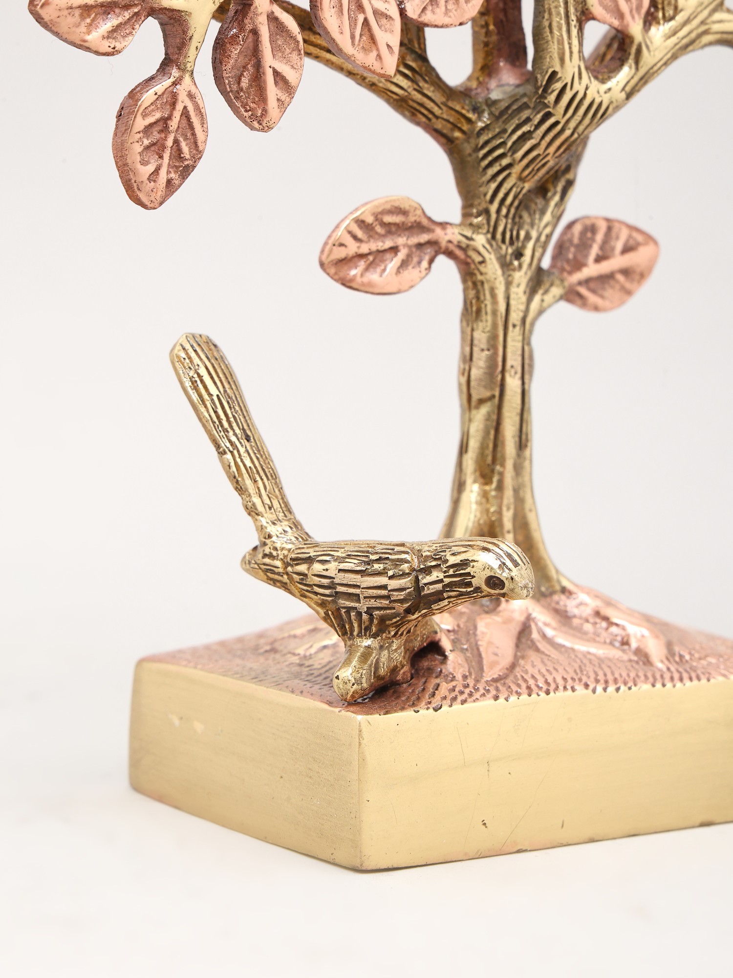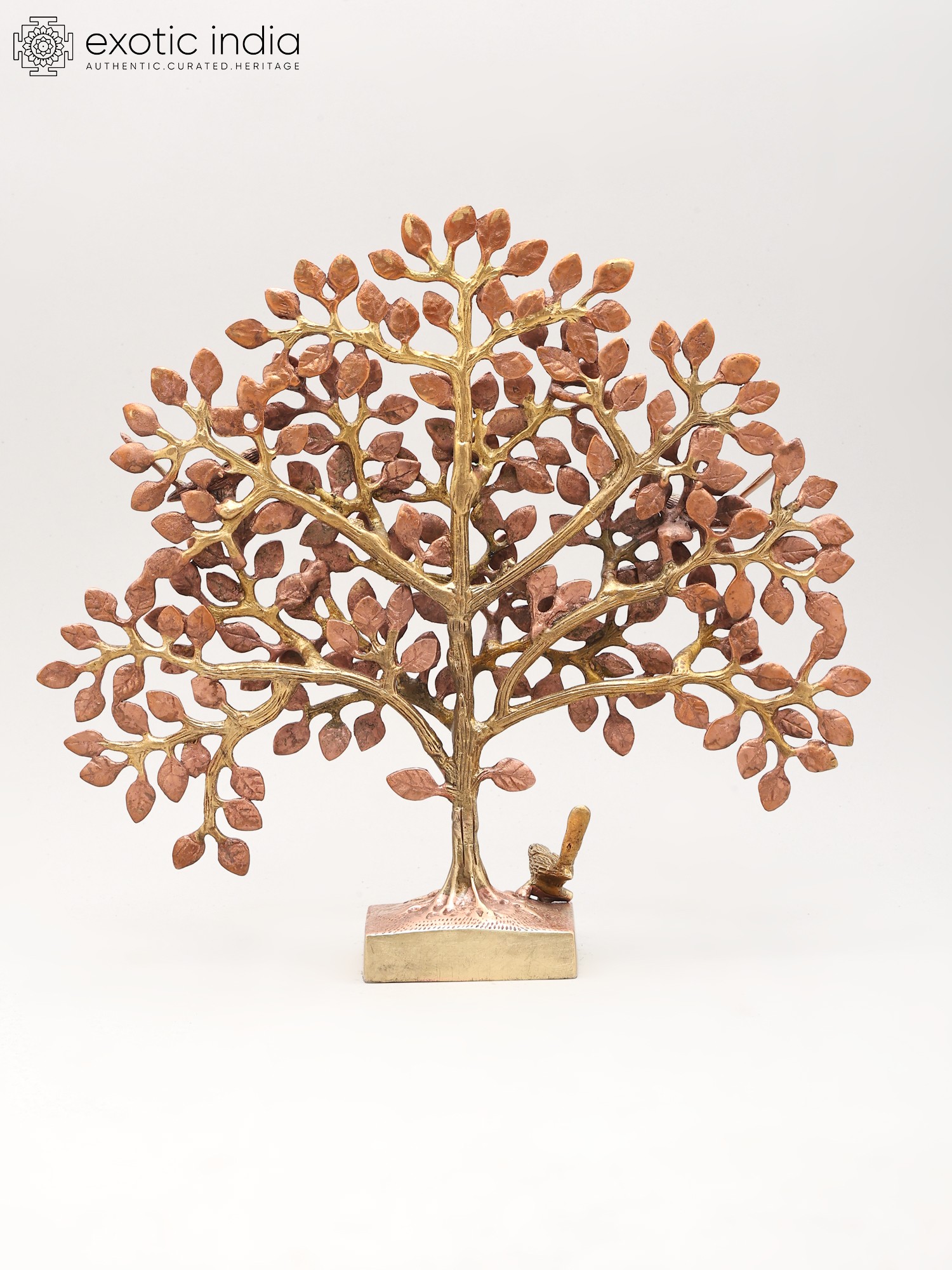 This brass Tree of life with three birds sitting on it is a simple music that will enchant your heart and your eyes. The use of brass depicts its longevity and ensures the beholder about its presence for generations. The depiction of three parrots sitting and playing on the tree is a string that connects the metallic art with nature. Keeping a small Diya or placing a statue alongside it will not only enhance its beauty but also generate some very pious energies.