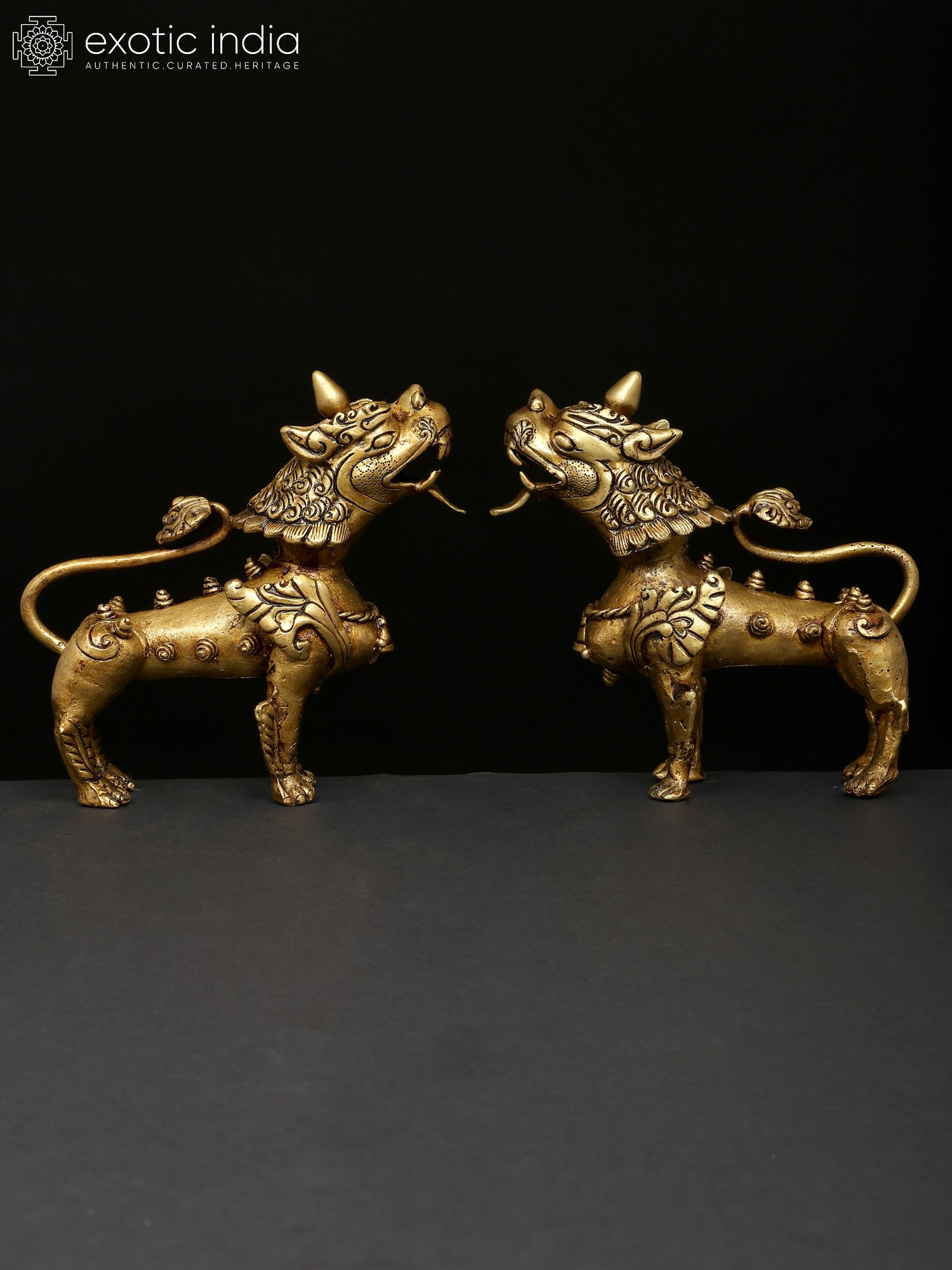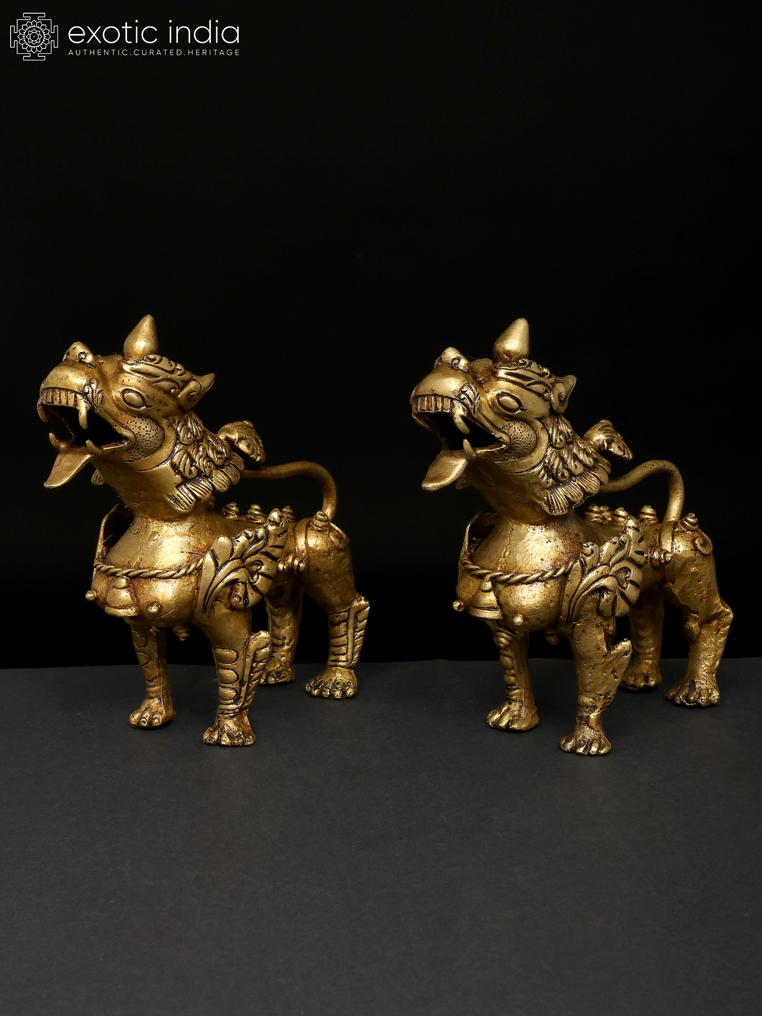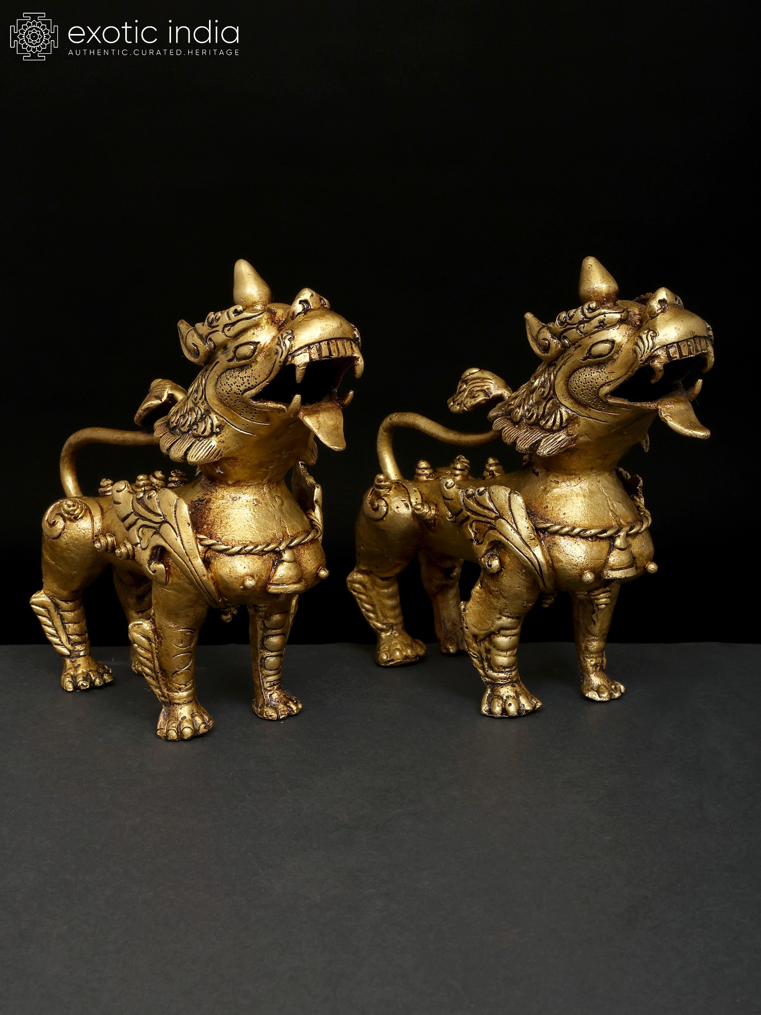 Full Gold Plated Nepalese Temple Lion Pair