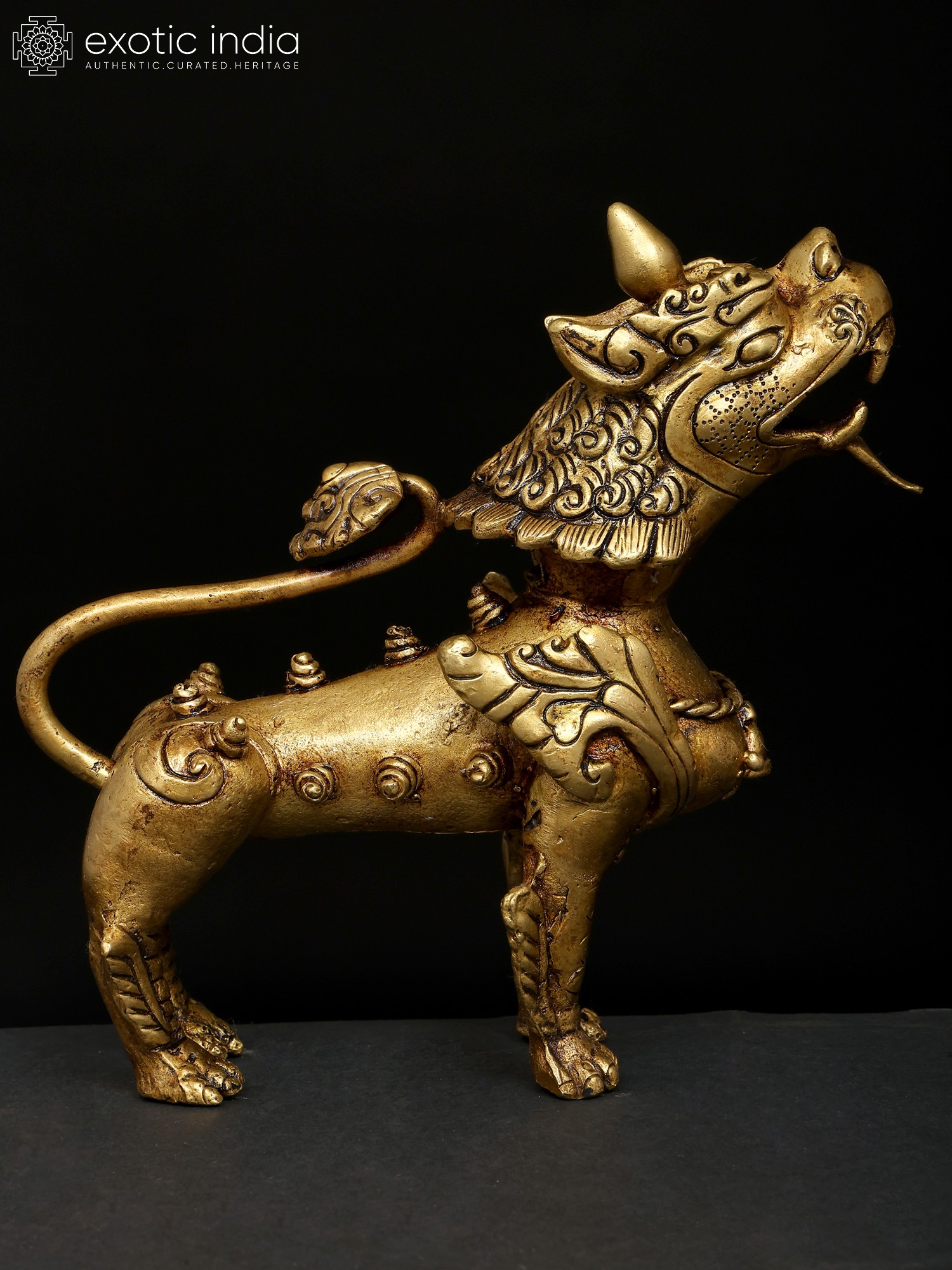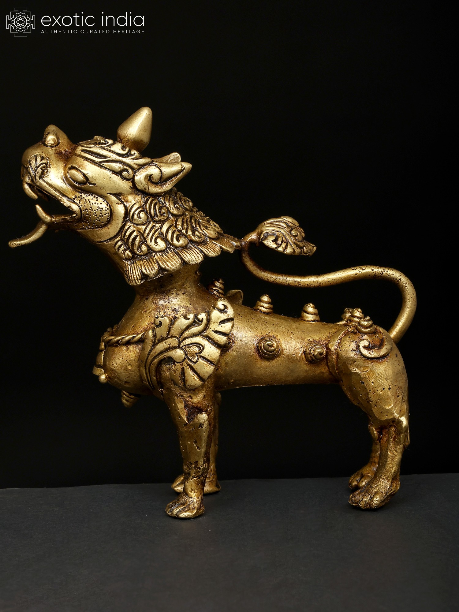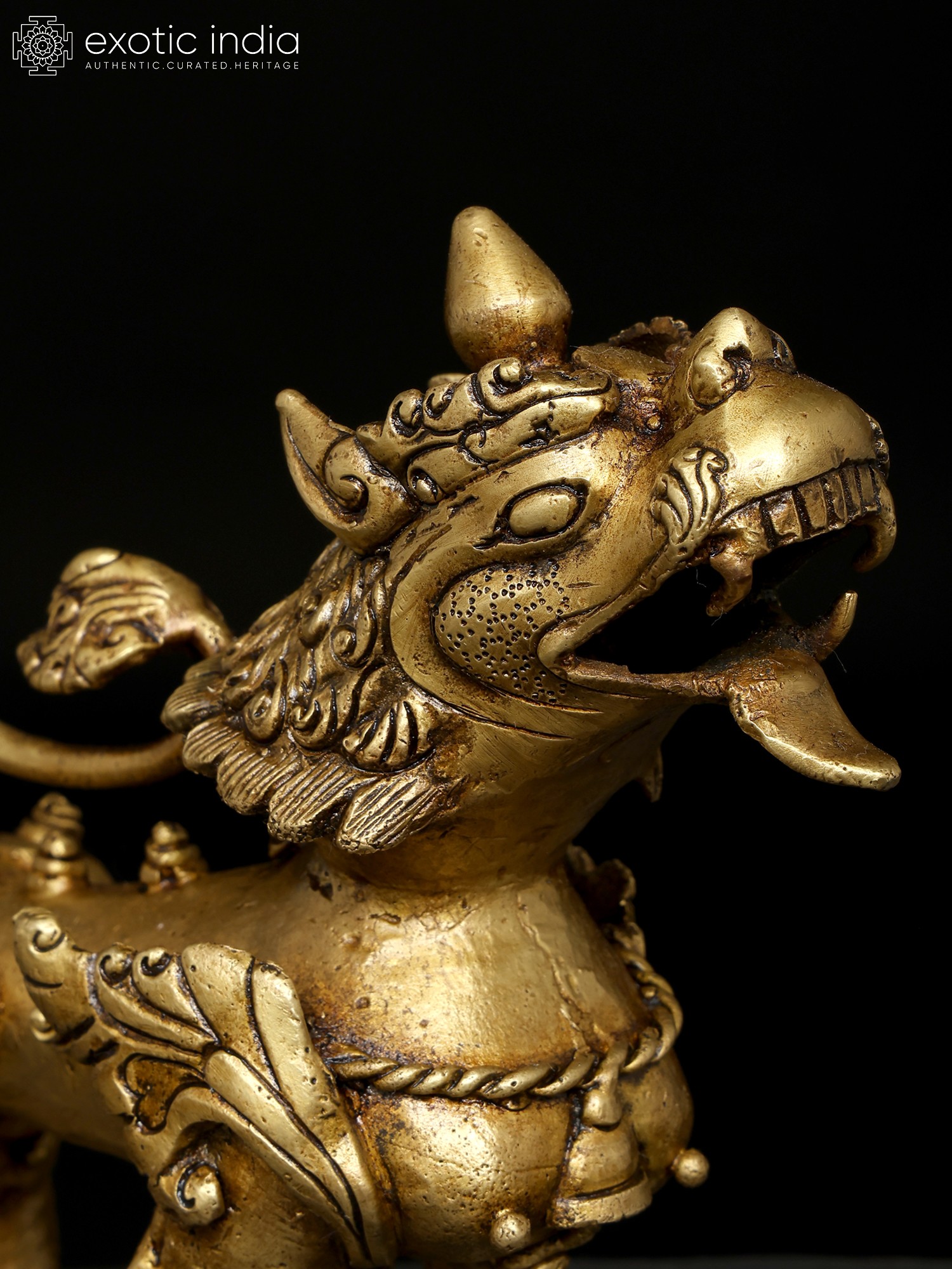 Full Gold Plated Nepalese Temple Lion Pair