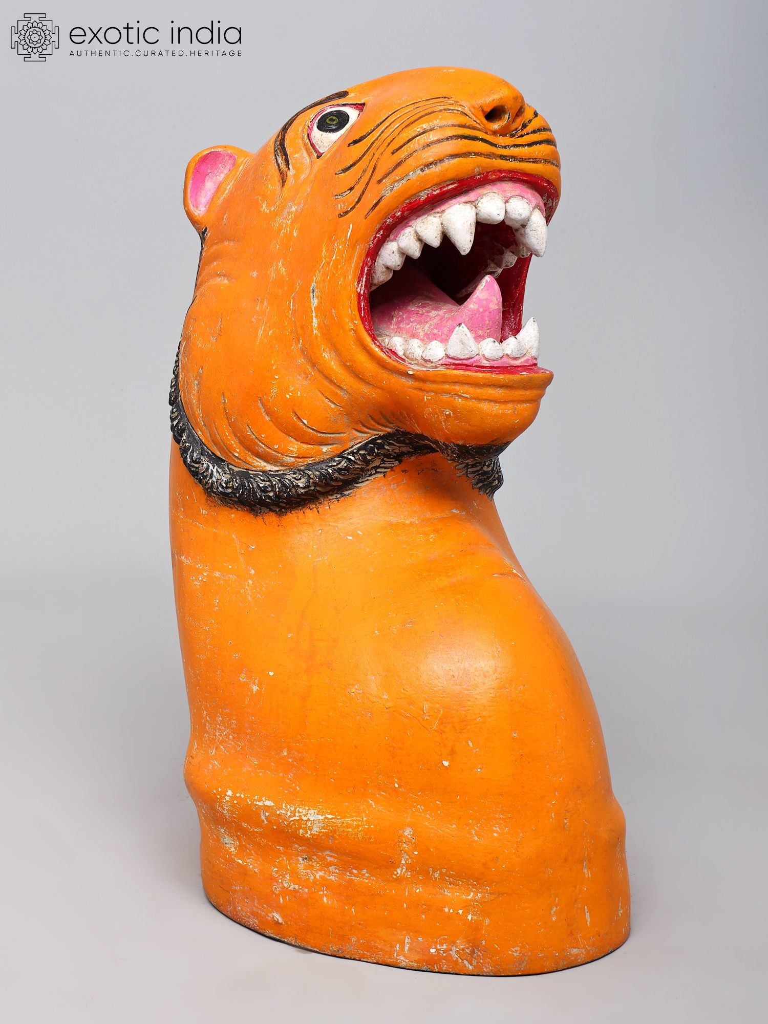 Traditional Tiger Head Statue - Bold Orange Animal Figurine