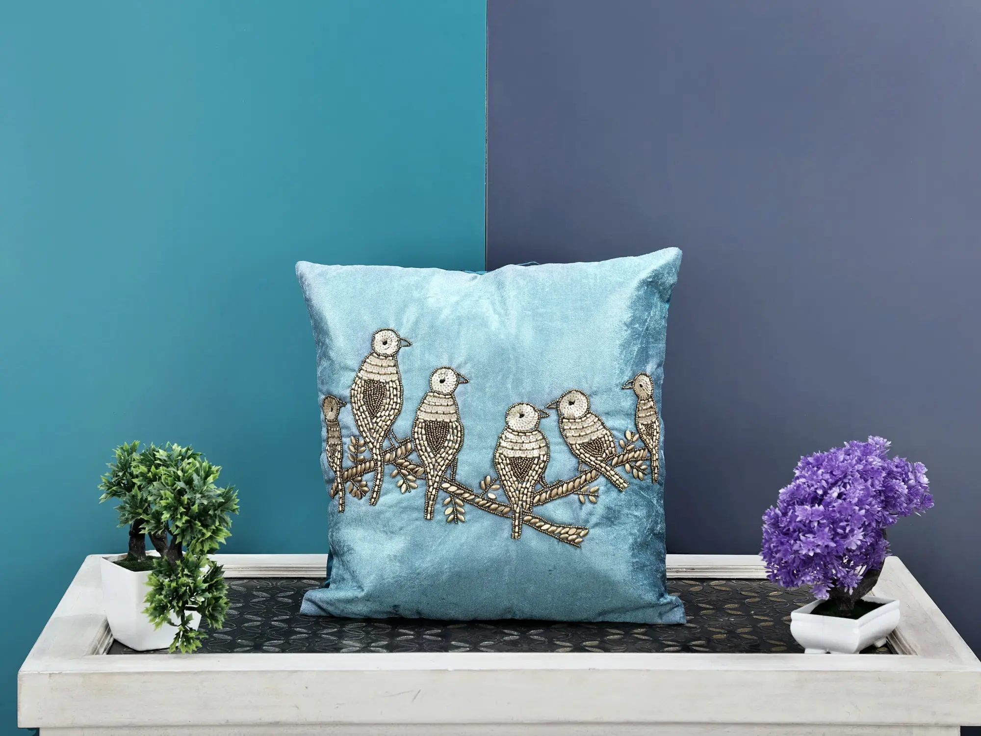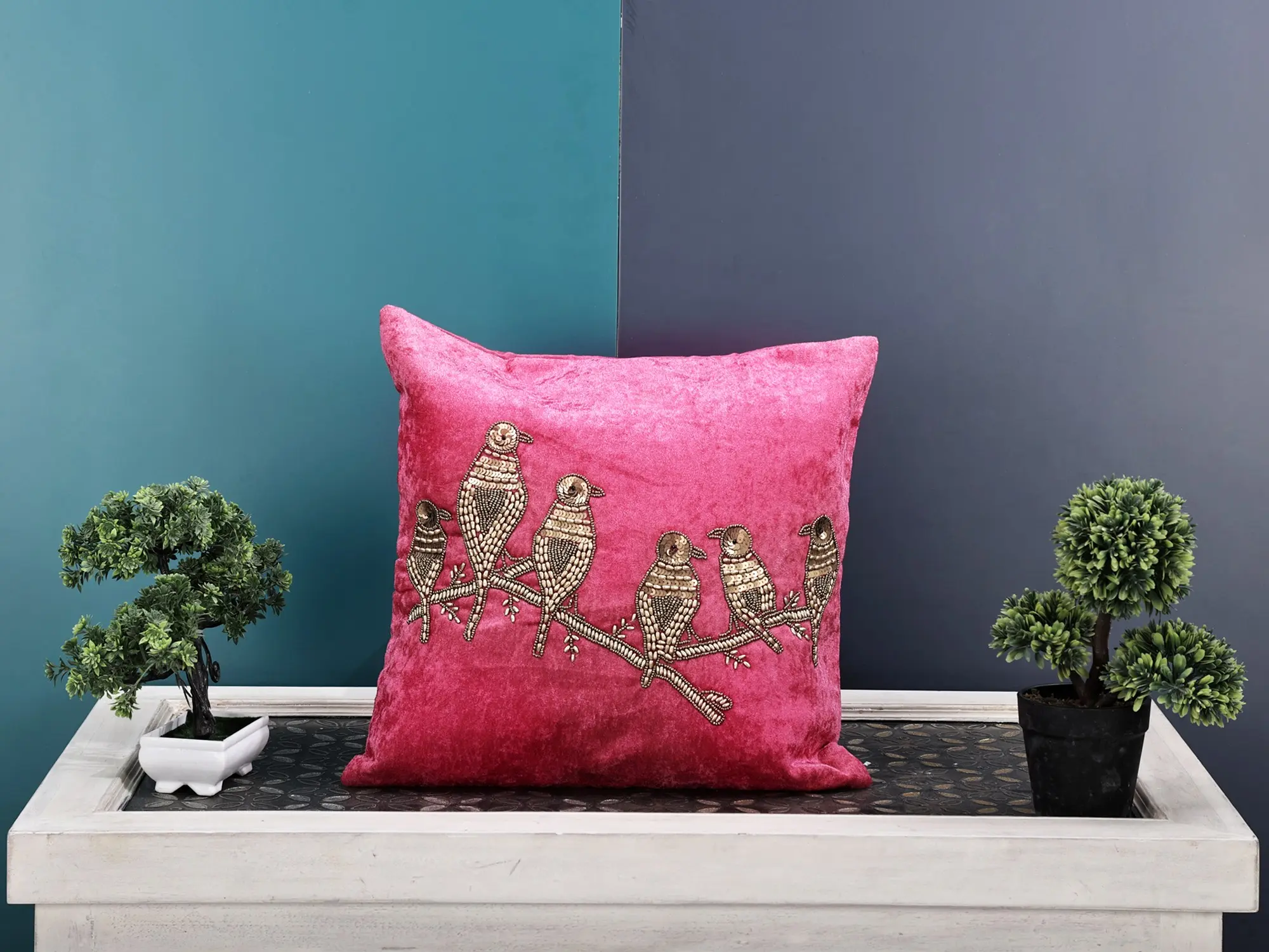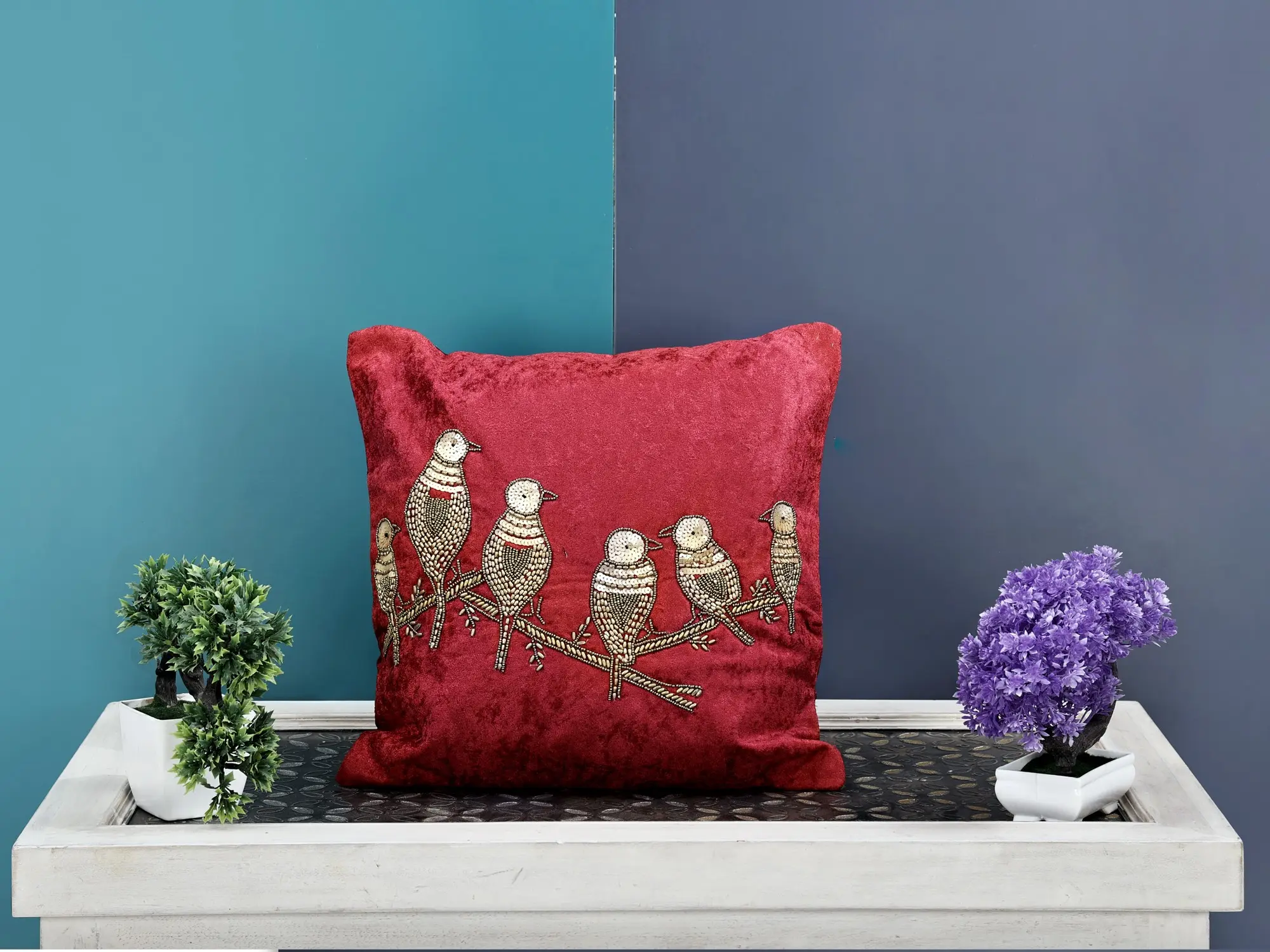 Exotic India Art's colourful and airy cushions would add charm to the beauty of your living area. These feathery cushions of birds are prepared with love and tepidness such is the artistry of beadwork. These striking velvet cushions are available in a variety of colours. To improve the elegance of your home decor, choose this exclusive delicate hand-embroidered birds cushion covers covered in bead and sequin work. With this vibrant velvet cushion cover, you can add a splash of colour and a touch of luxury to your furniture.