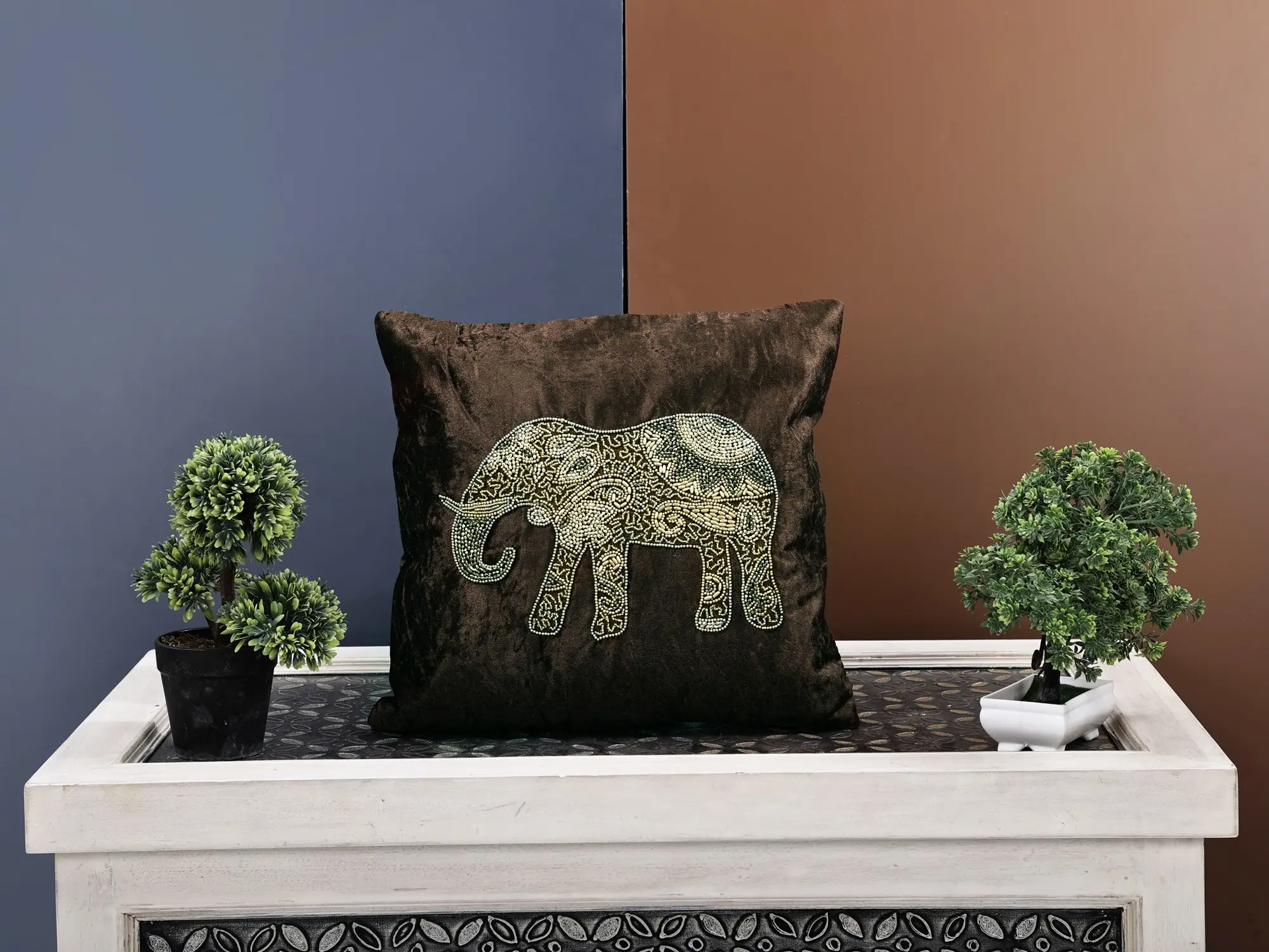 Traditional & Modern colourful handmade cushion Covers can be used to decorate your lounge, couches, and bed corners. Indian Cultural Elements have a touch that is so opulent and poised that it illuminates any home in which it resides! To improve the elegance of your home decor, choose this exclusive velvet hand embroidered elephant cushion cover with wonderfully designed hand beaded work. With this vibrant velvet cushion cover, you can add a splash of colour and a touch of luxury to your furniture.