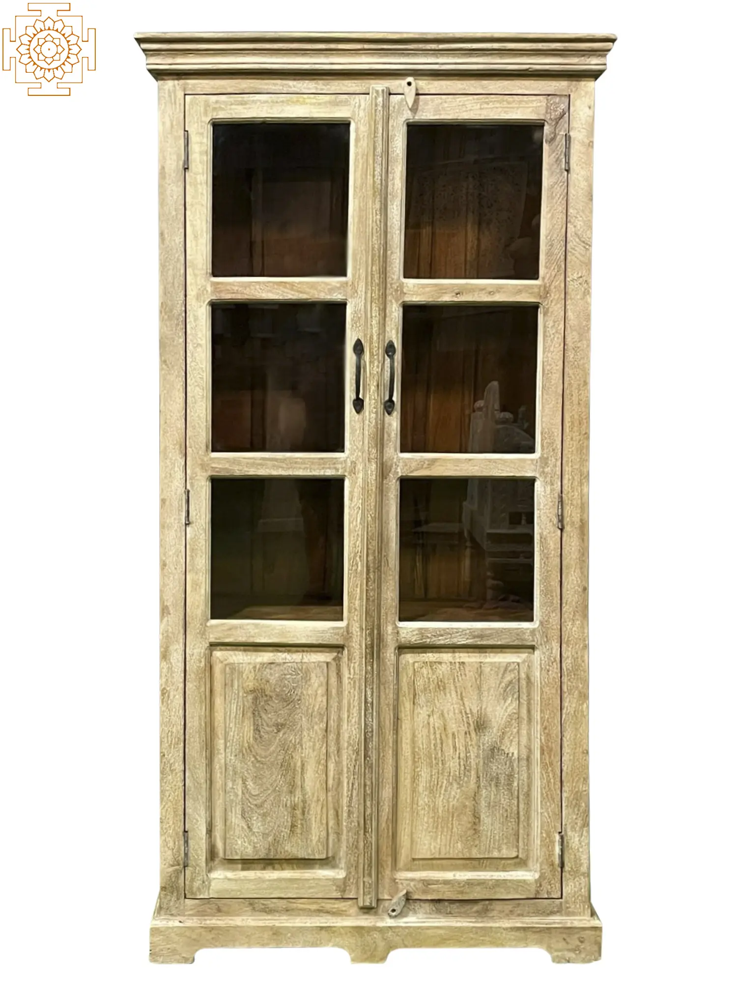 This Vintage Almirah is made of the finest mango wood and tells the narrative of perseverance.  It is a stunning combination of beauty and functionality that stands tall. Its twin doors expose translucent glass panes, allowing you to glimpse what literary treasures it may contain. It emanates a regal atmosphere because it is painted in a timeless cream color.  It stands proudly as a tribute to ancient workmanship, retaining the wisdom of the centuries in its sacred shelves. This almirah, a sign of intellectual dignity, whispers of the past, urging you to enjoy of its literary treasures.
