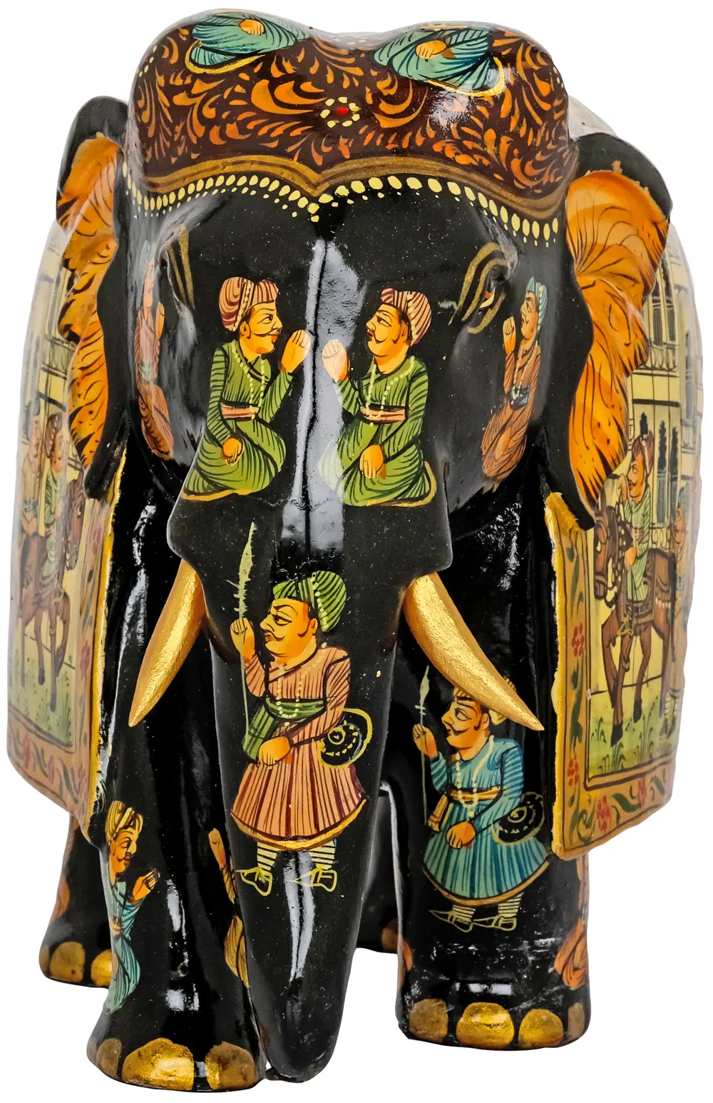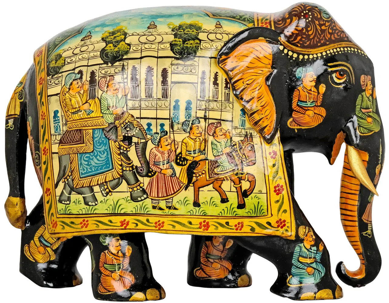 Adorn your home with a piece of art that echoes the grandeur of royal processions and the timeless beauty of traditional craftsmanship. This captivating piece is more than just a figurine; it's a miniature masterpiece that brings a touch of history and artistic flair to any space. The rich detail and vibrant colors tell a story, inviting you to delve into a world of intricate artistry and cultural richness. Each brushstroke on this piece is a testament to the skill and dedication of the artist. The carefully rendered scenes depict a royal procession, complete with figures dressed in elaborate attire, regal elephants adorned with intricate details, and stately architecture in the background. The color palette is carefully chosen to evoke a sense of opulence and tradition, creating a visual feast for the eyes. This is the perfect item to add a unique artistic touch to your space.