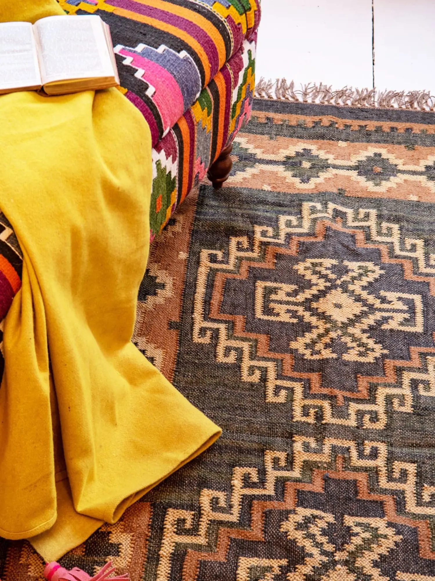 Kilim rugs have surged in popularity due to their timeless charm and intricate patterns. This Wool and Jute Mix Multicolor Woven Persian Kilim Rug captures the essence of this trend with its exquisite beauty. Mirroring the allure of traditional Kilim rugs, these modern interpretations exhibit a harmonious blend of wool and jute, enhancing both durability and aesthetic appeal.