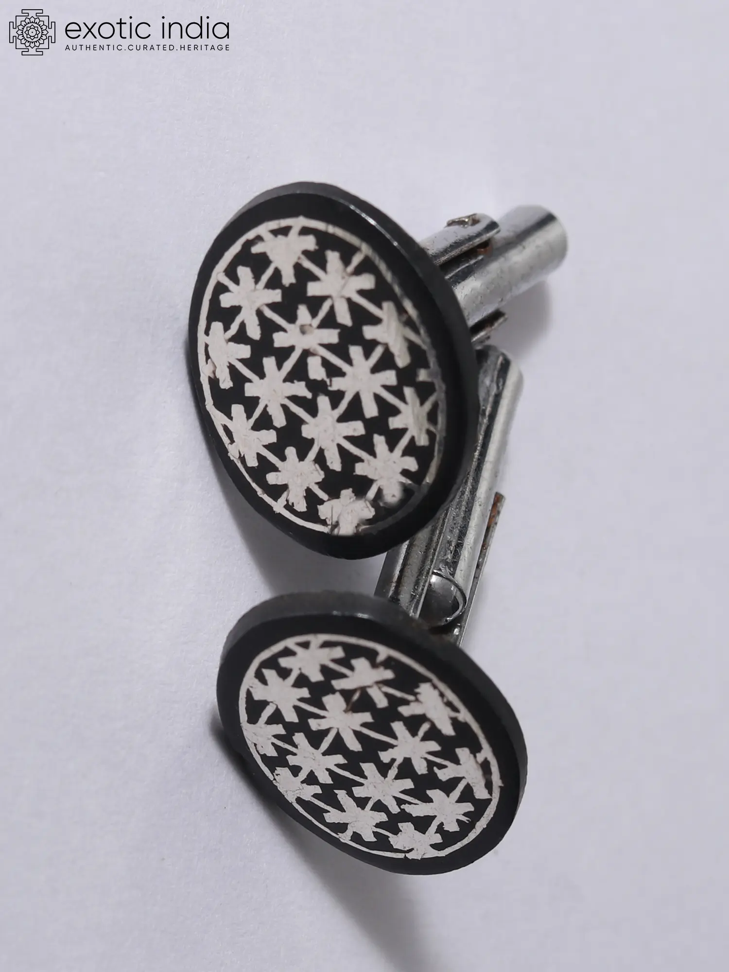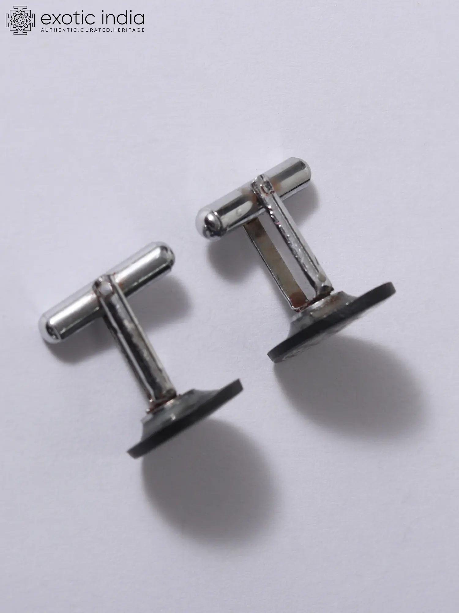 Cufflinks hold symbolic and aesthetic importance in men's fashion. Beyond securing shirt cuffs, they serve as accessories reflecting personal style, wealth, and attention to detail. Whether classic or contemporary, cufflinks add a touch of sophistication, enhancing the overall elegance of formal attire and showcasing the wearer's discerning taste. These Small Beautiful Cufflinks made of Bidri Work contain Gunmetal with Real Silver and work as perfect accessories for men with a regal taste.