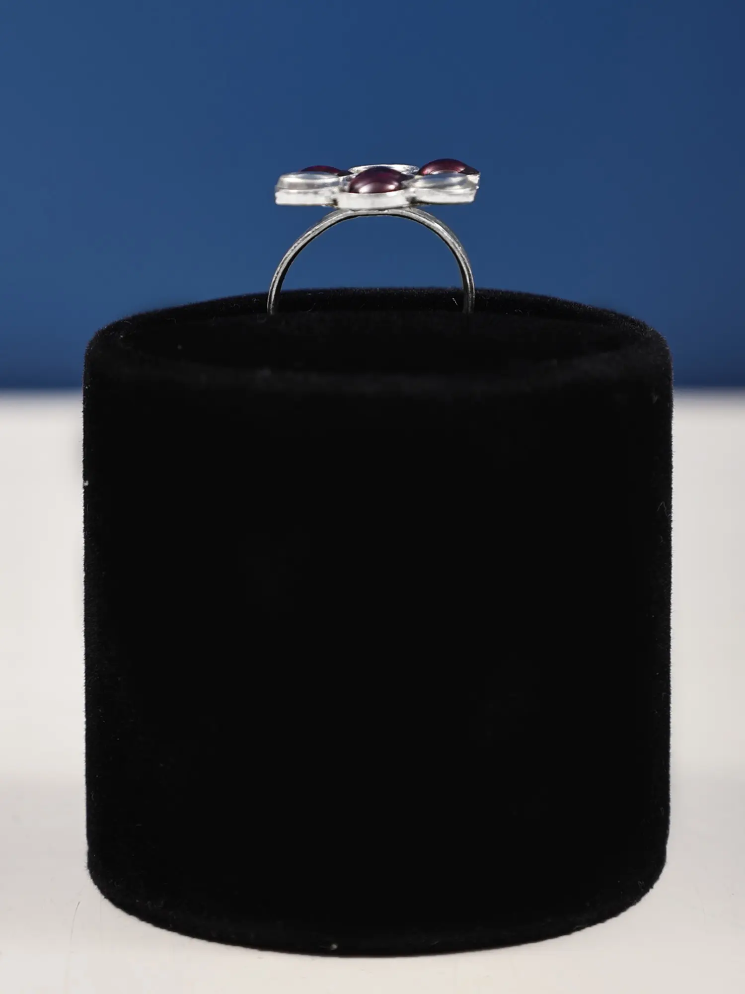Adorn your finger with the delicate beauty of our adjustable floral design sterling silver ring featuring garnet and crystal stones, meticulously crafted, this ring showcases a unique floral design with petals embracing a captivating combination of garnet and crystal stones. The adjustable features ensure a perfect fit for any finger.
