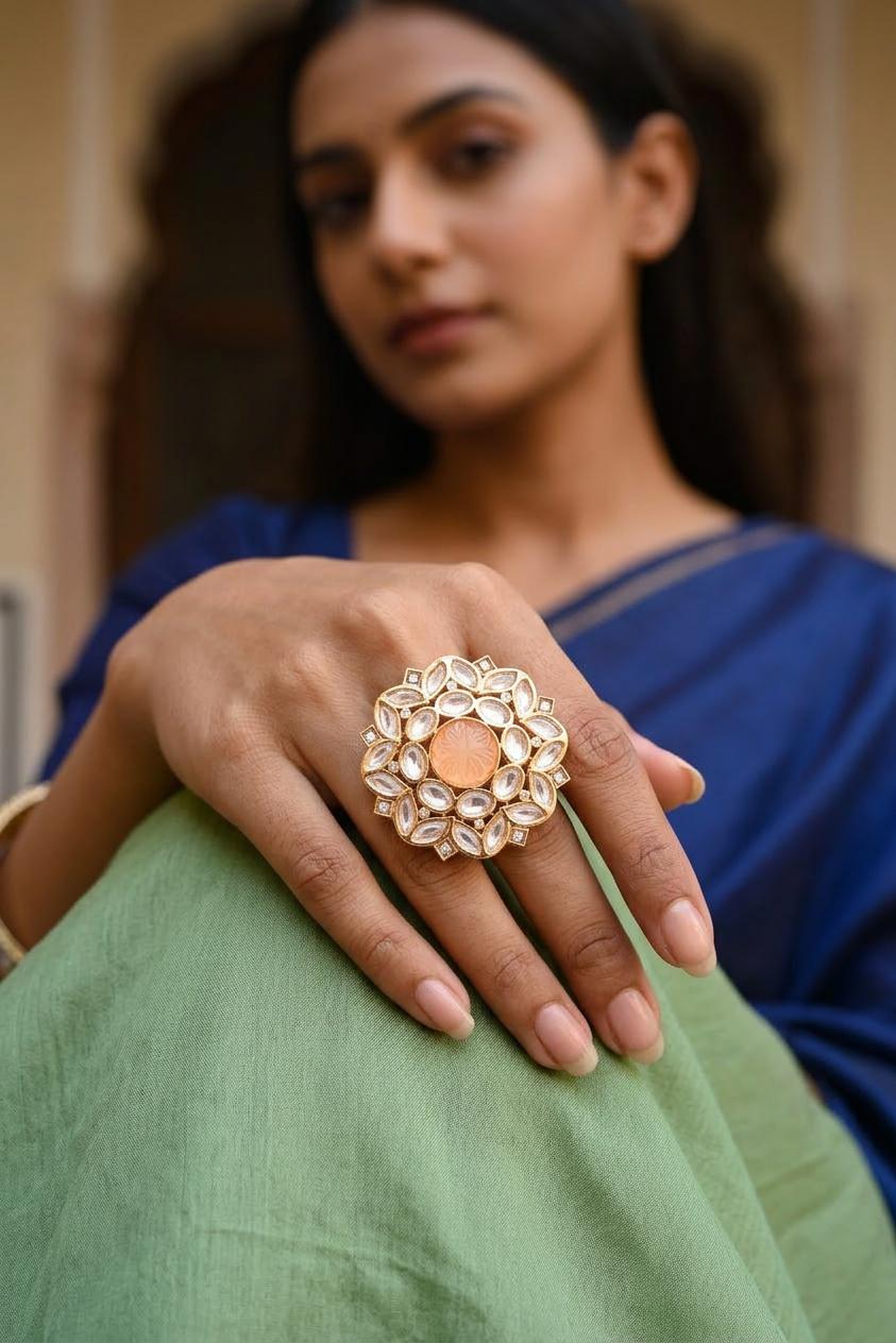 Adjustable Cocktail Ring with Round Kundan Stones