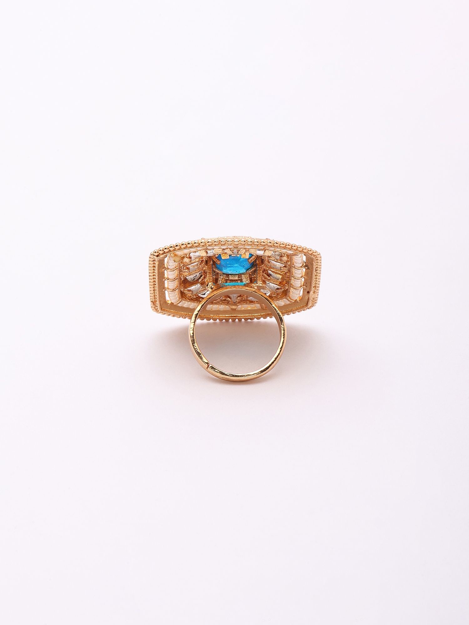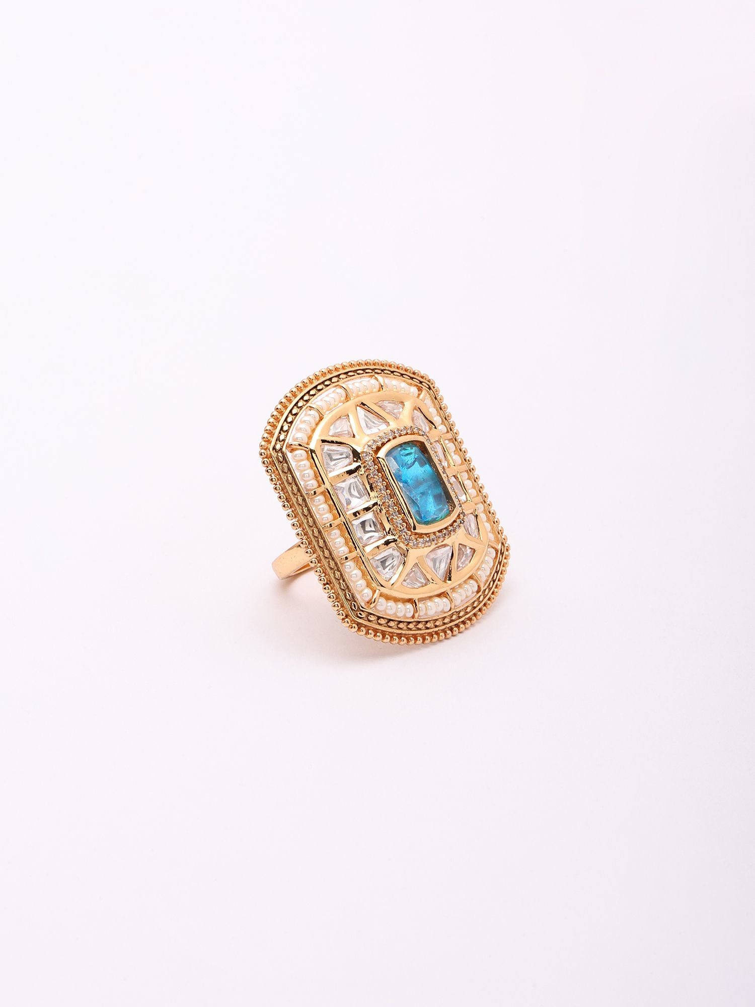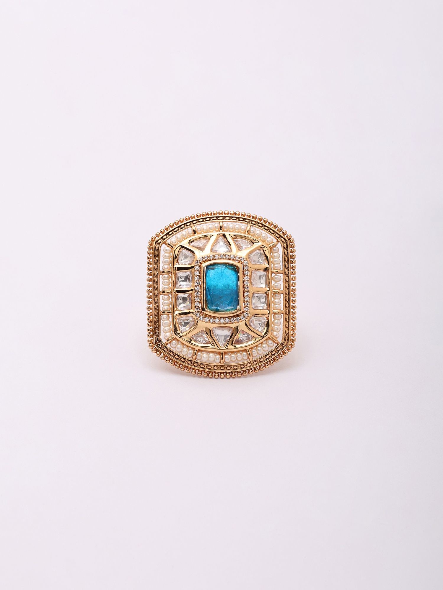 Features a striking central blue gemstone surrounded by intricate Kundan stone settings.