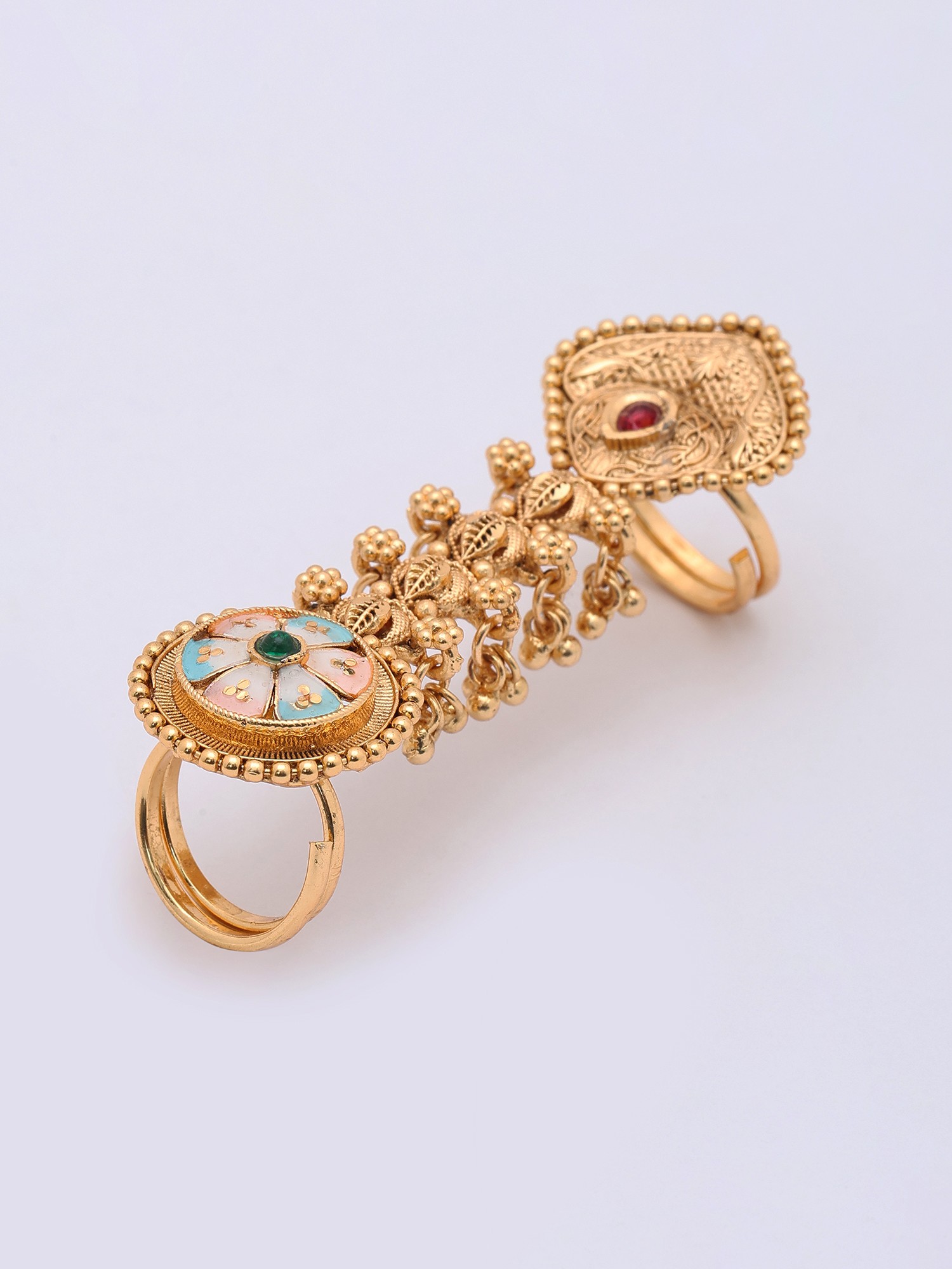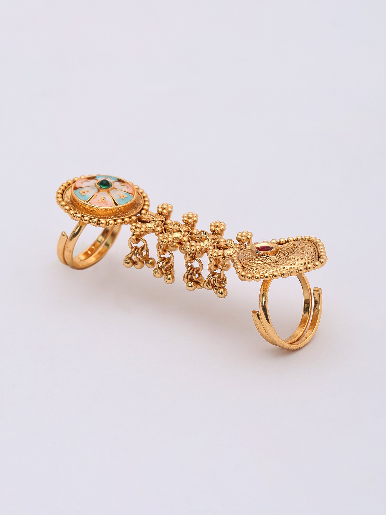 Floral Meenakari Adjustable Long Finger Ring (Double Ring)