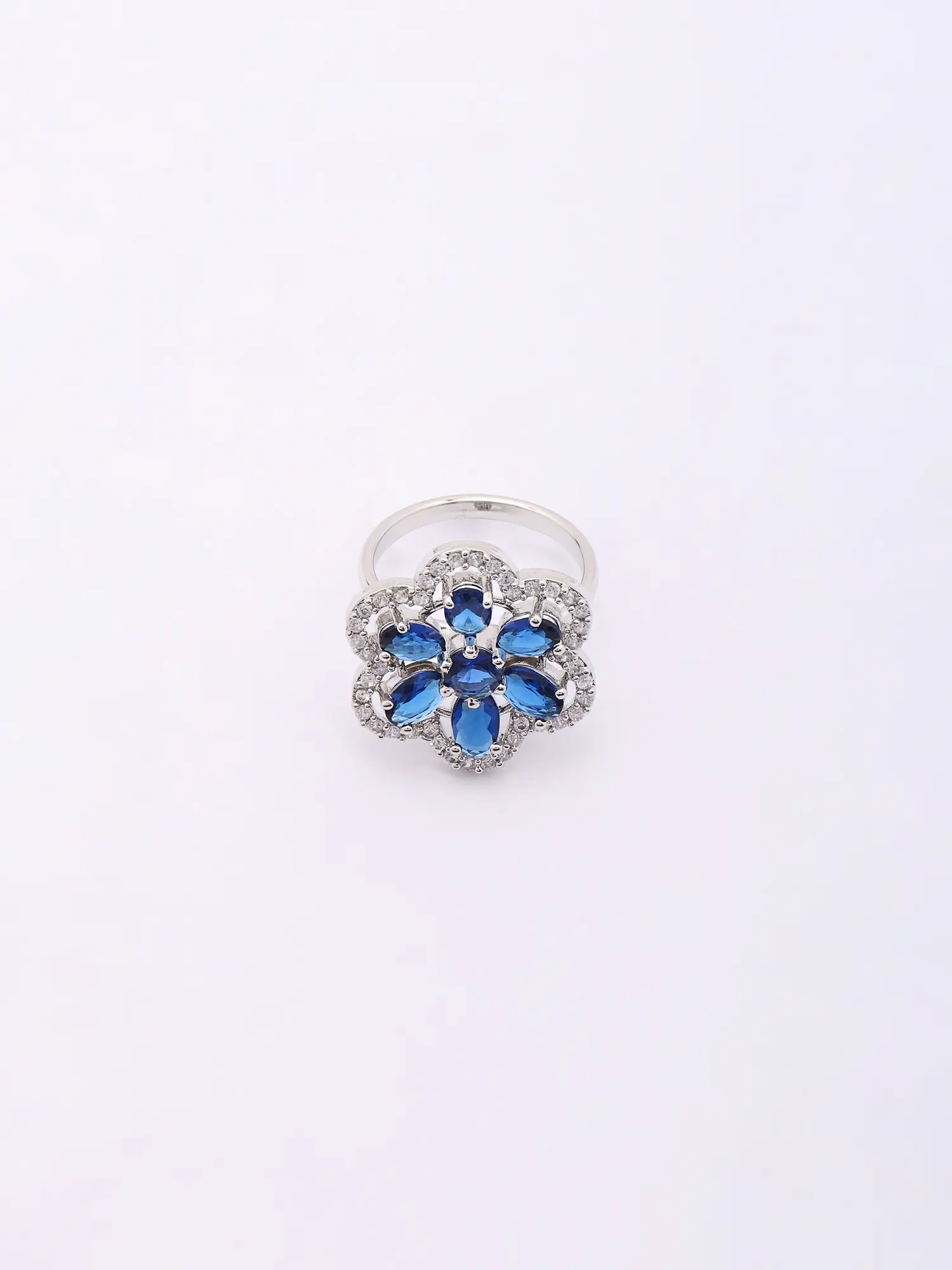 The centerpiece of this design is a vibrant cluster of deep blue pear-cut stones, radiating a mesmerizing allure that draws the eye. These are gracefully enveloped by a shimmering embrace of tiny, brilliant American diamonds, each catching the light with exceptional fire. The overall form, measuring approximately 1 inch in height and 0.82 inches in width, creates a noticeable yet elegantly proportioned statement on your finger. You’ll appreciate the thoughtful construction that ensures comfort without compromising on visual impact.