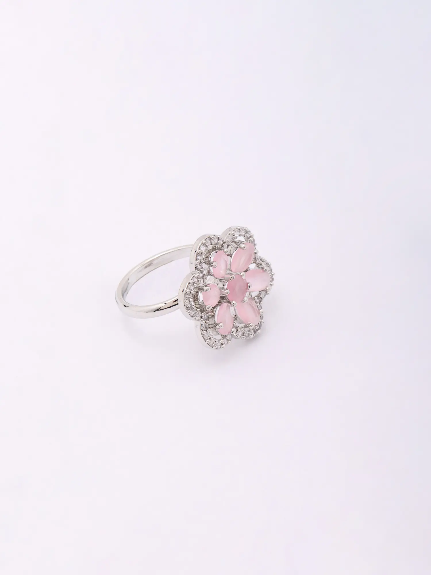 Geometric Starburst Adjustable Ring with Pink and White American Diamonds