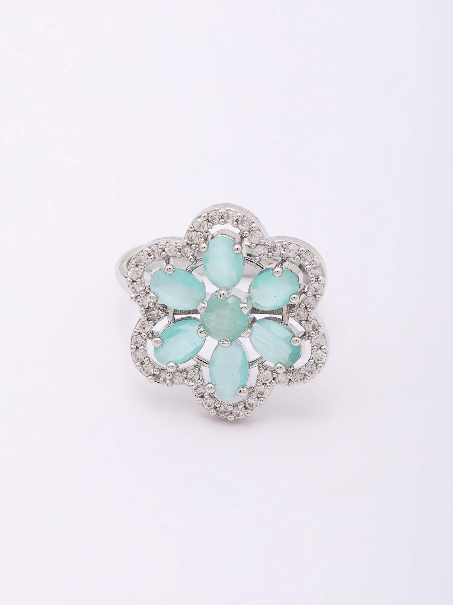 Adjustable Statement Ring Featuring a Floral Gemstone Halo