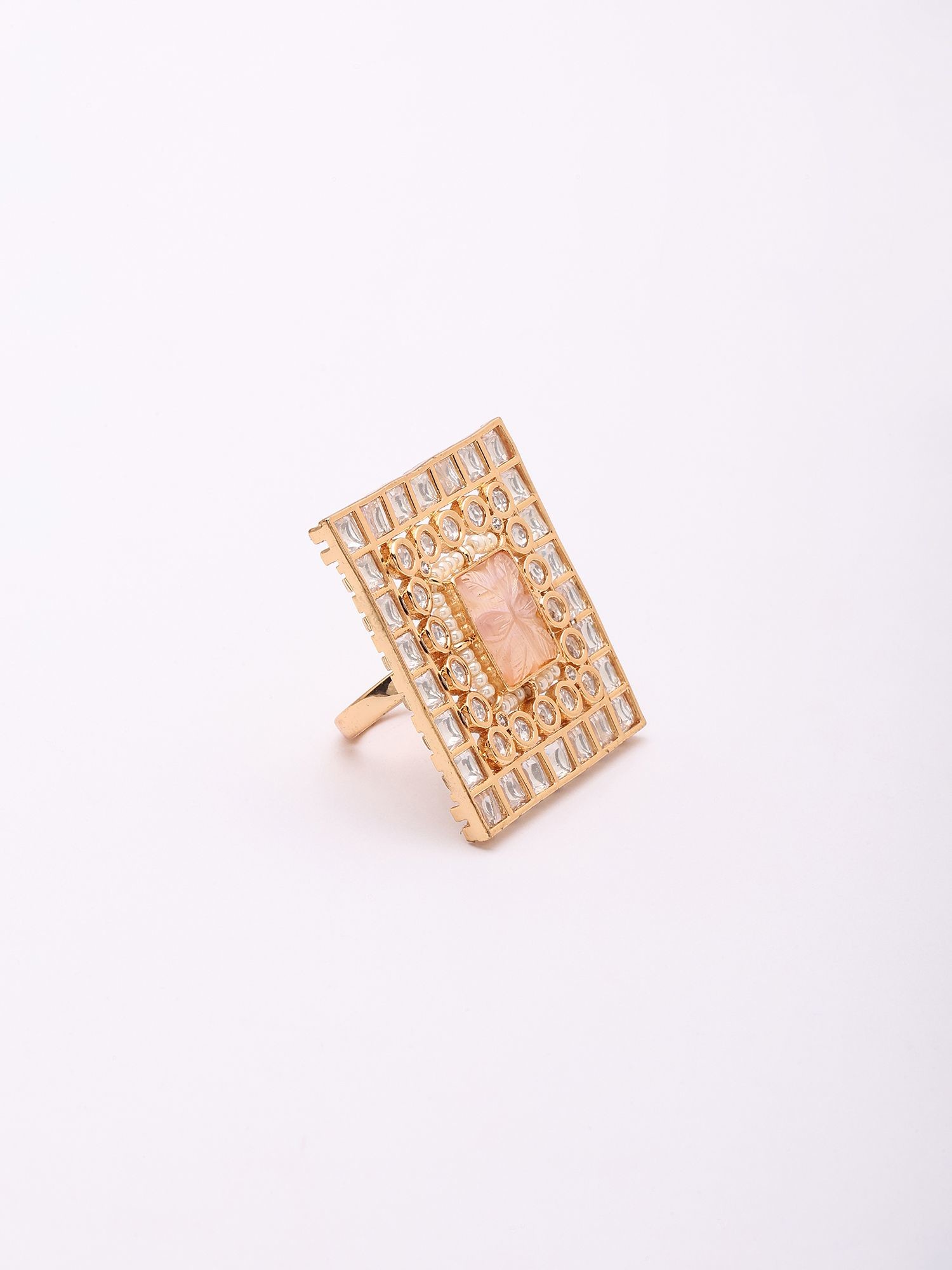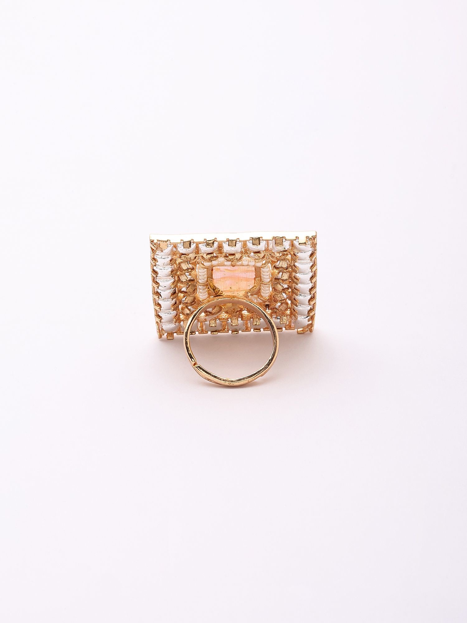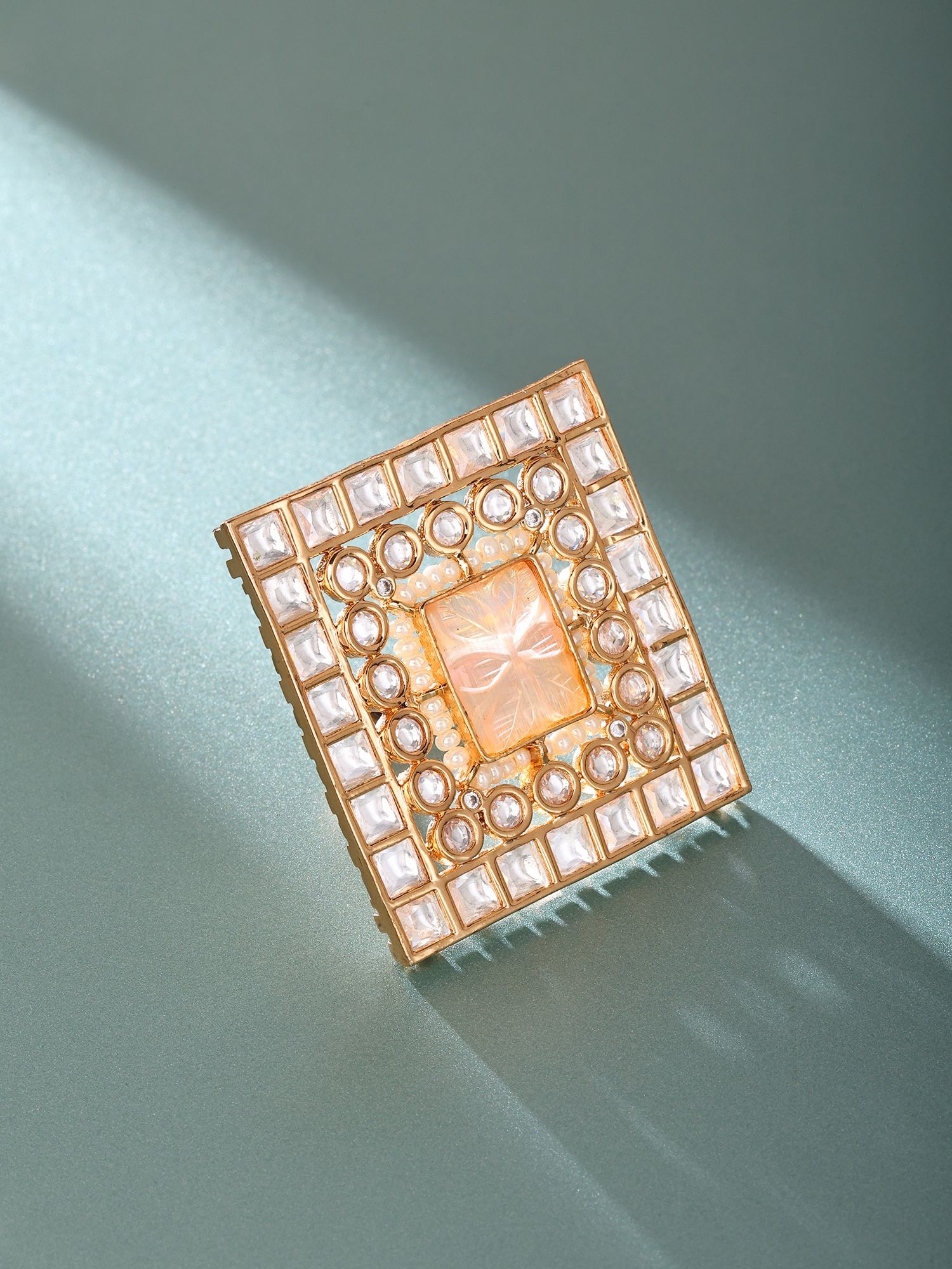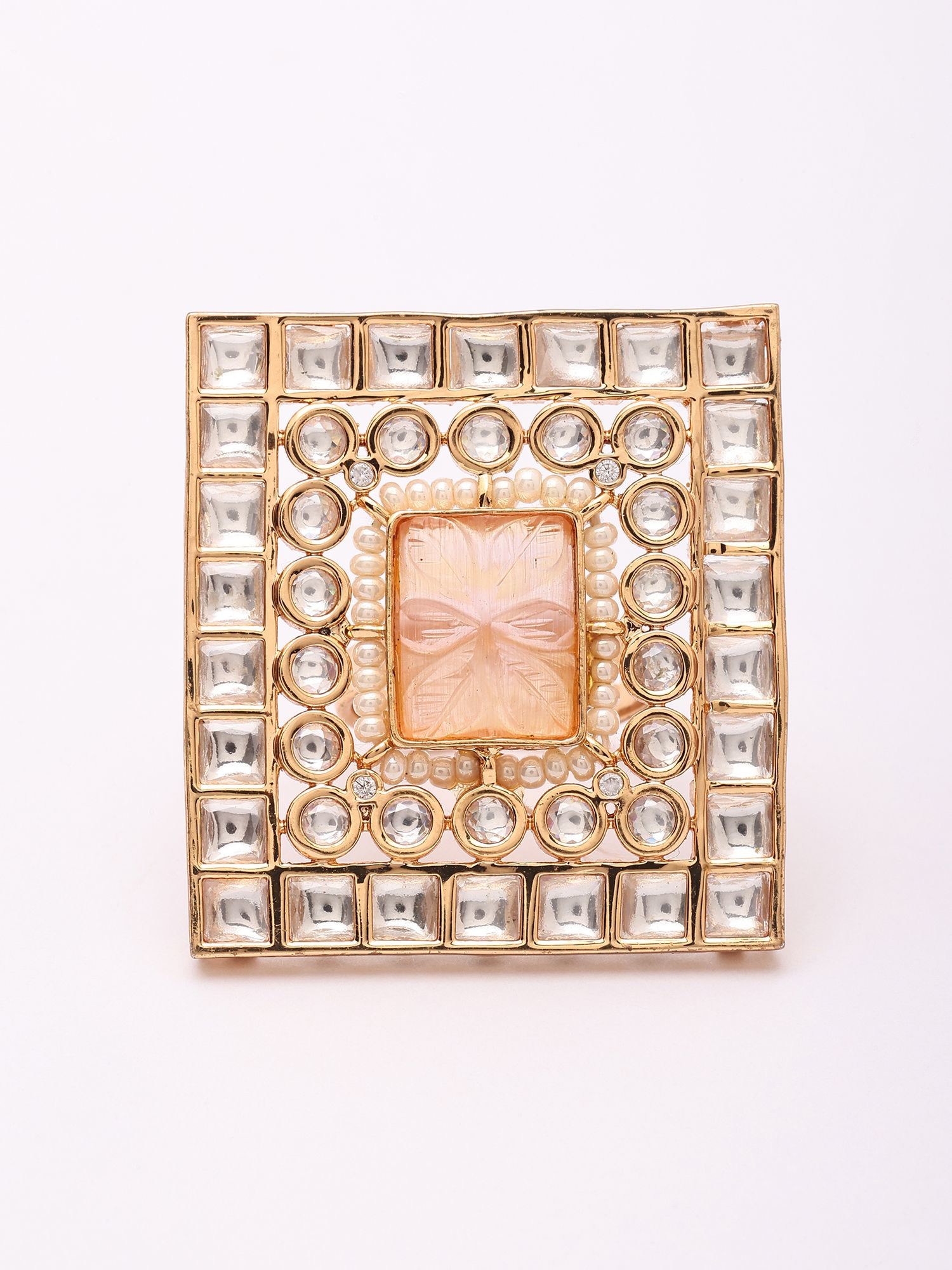 Adjustable Kundan Stone Square Ring