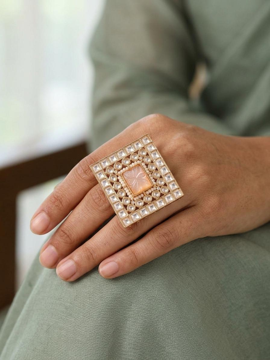 Designer Stone Studded Kundan Ring - Adjustable Fit