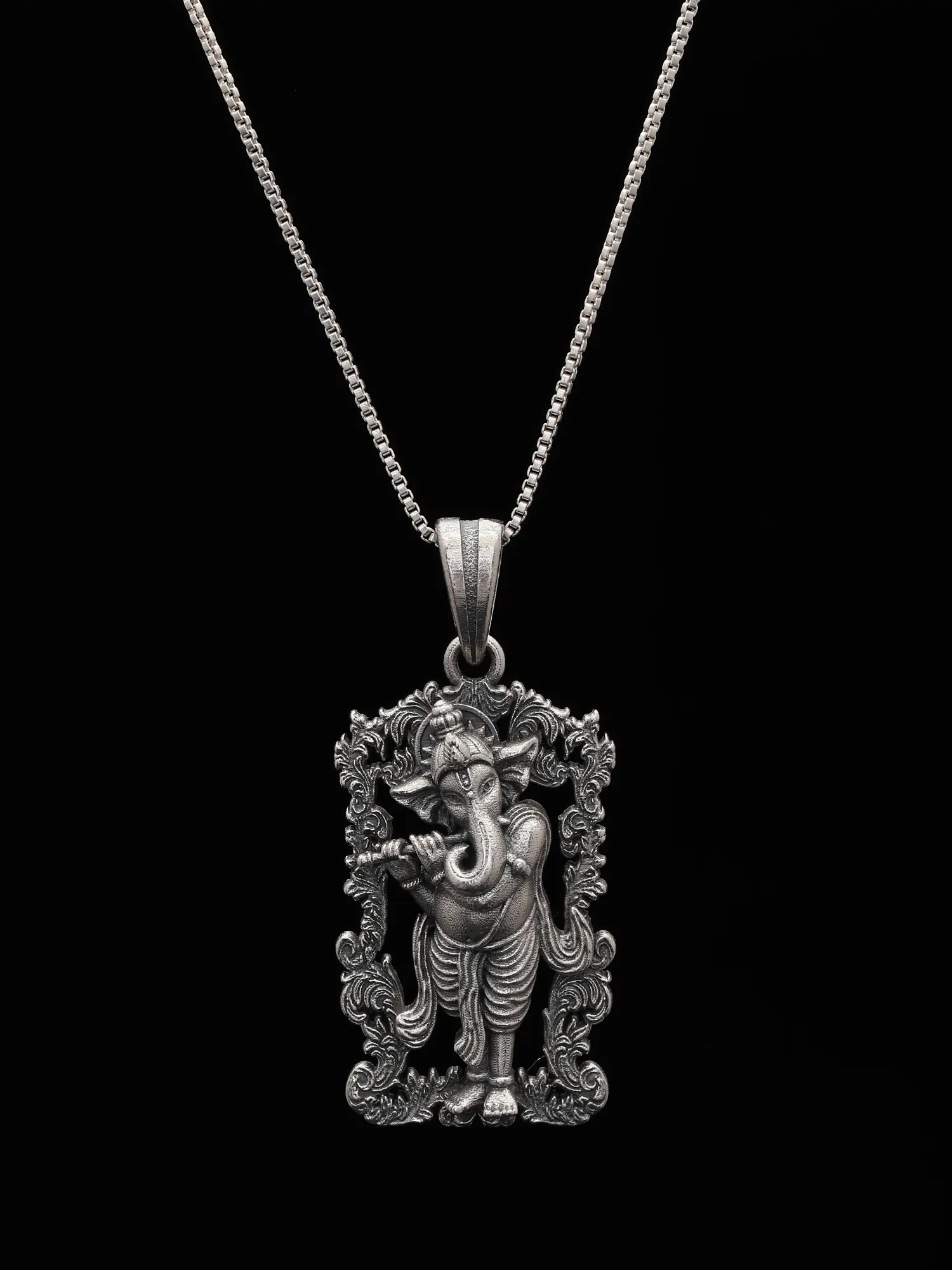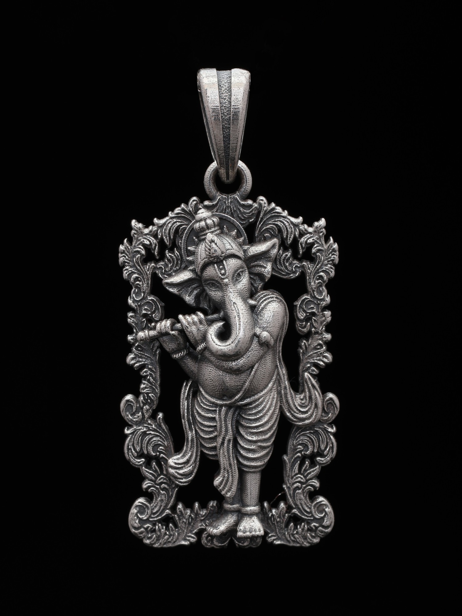Sterling Silver Chaturbhuja Lord Ganesha Pendant