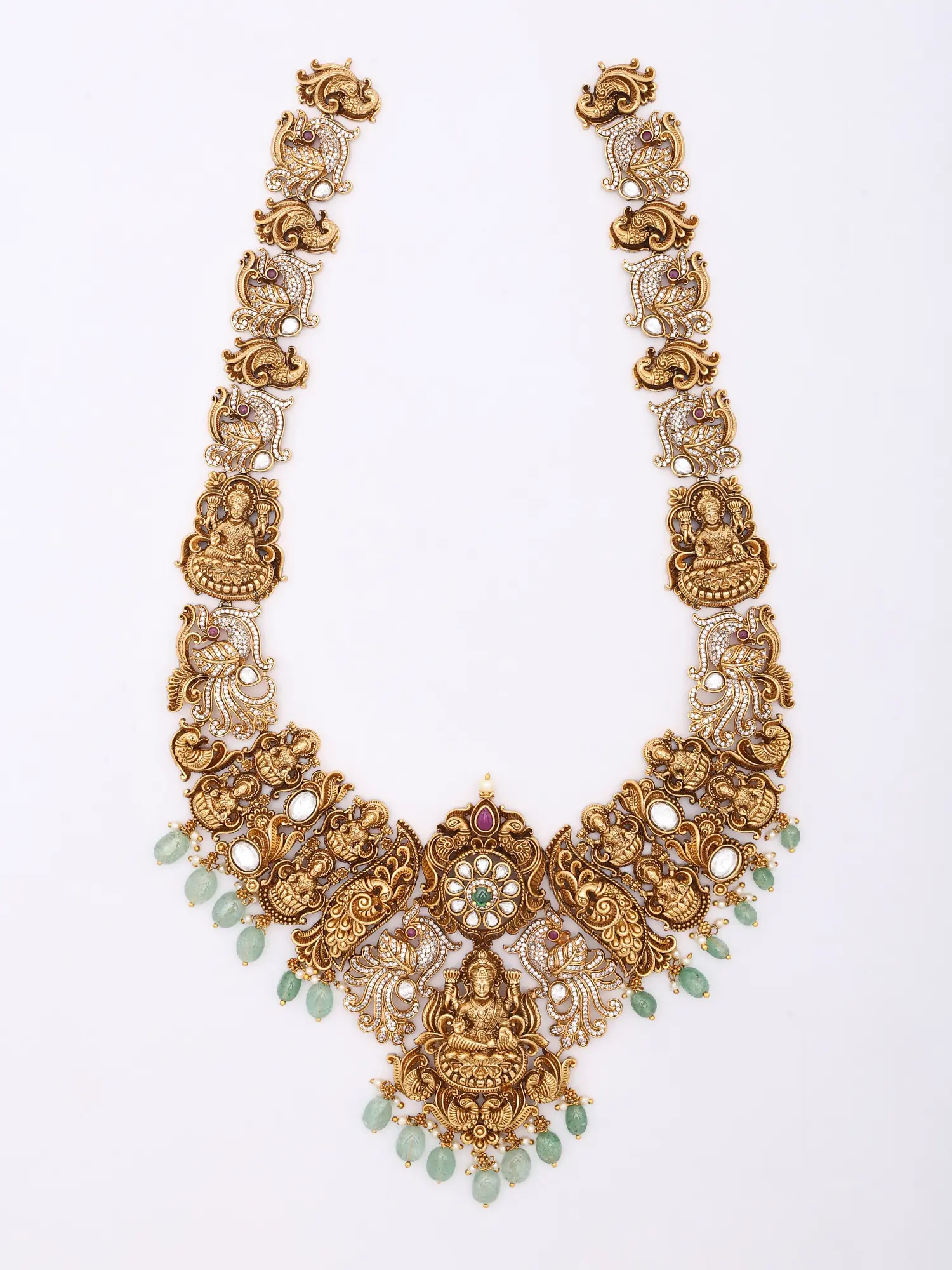 Antique Gold Finish Stone Studded Peacock Necklace Set