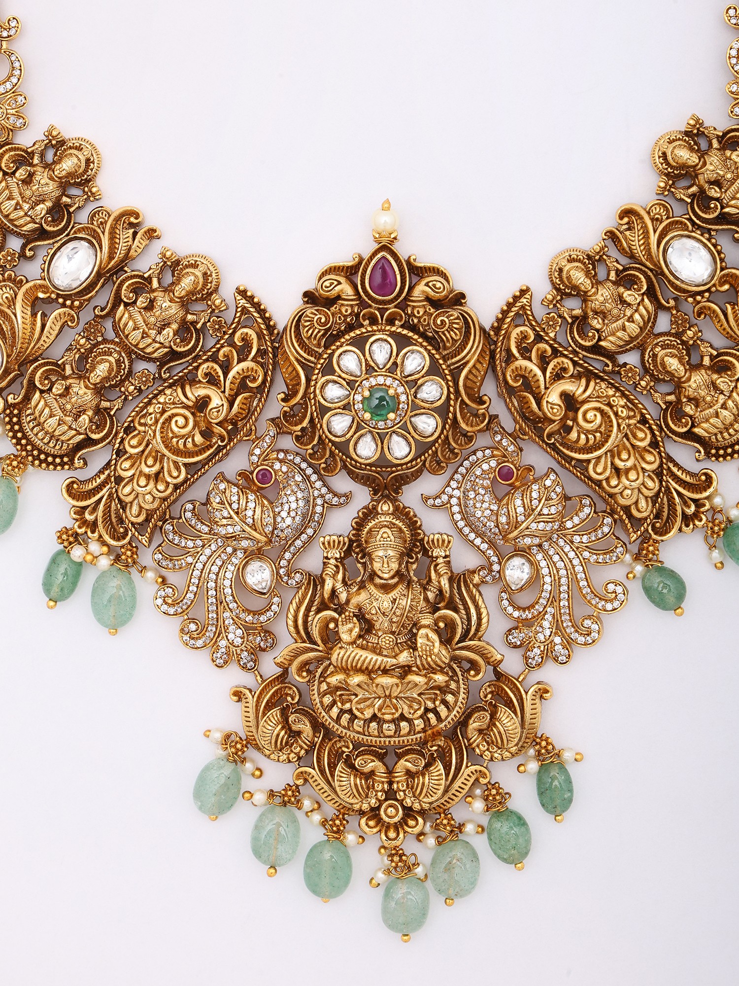 Temple-Style Goddess Lakshmi Multiple Strands Choker Necklace Set