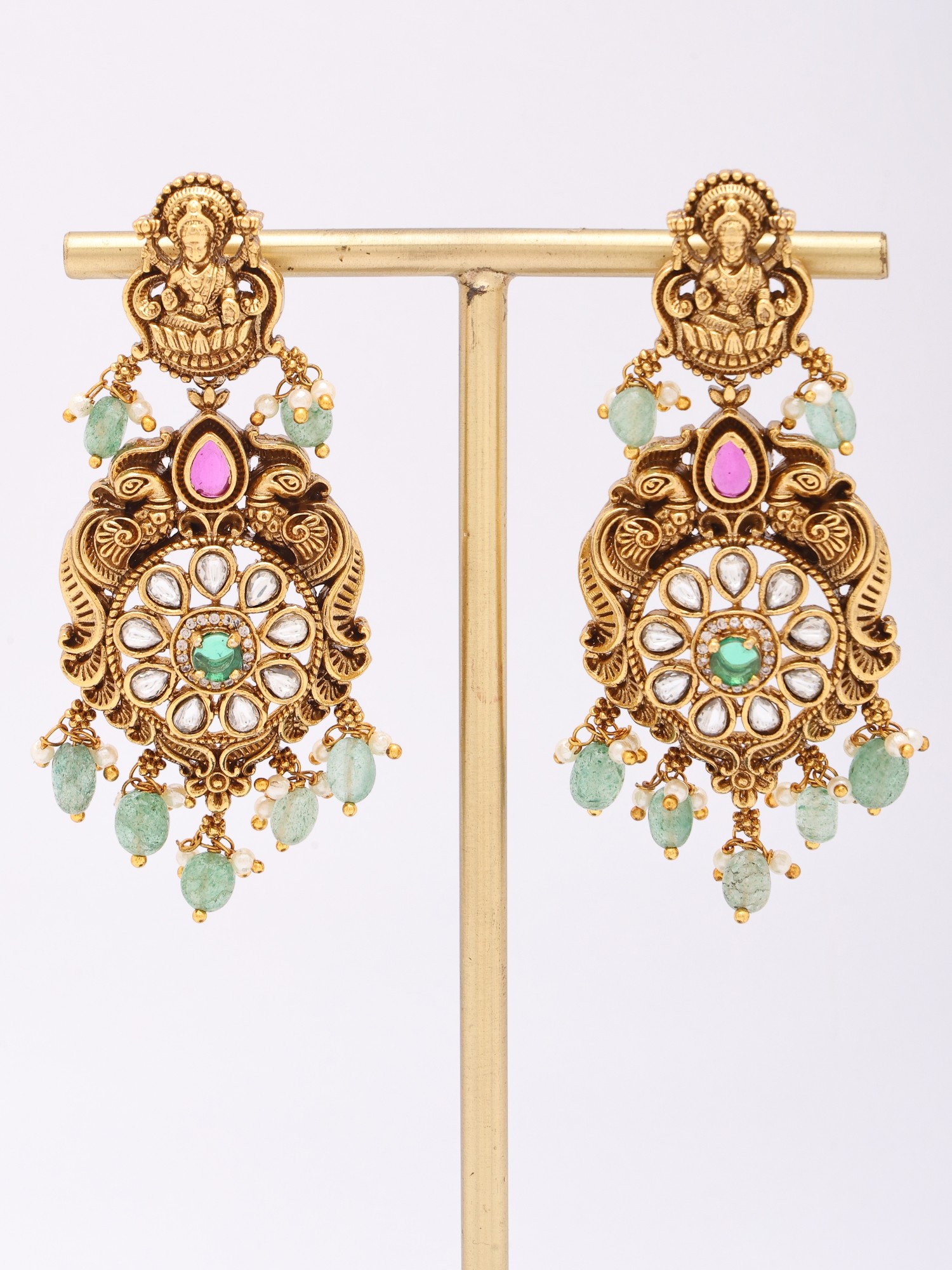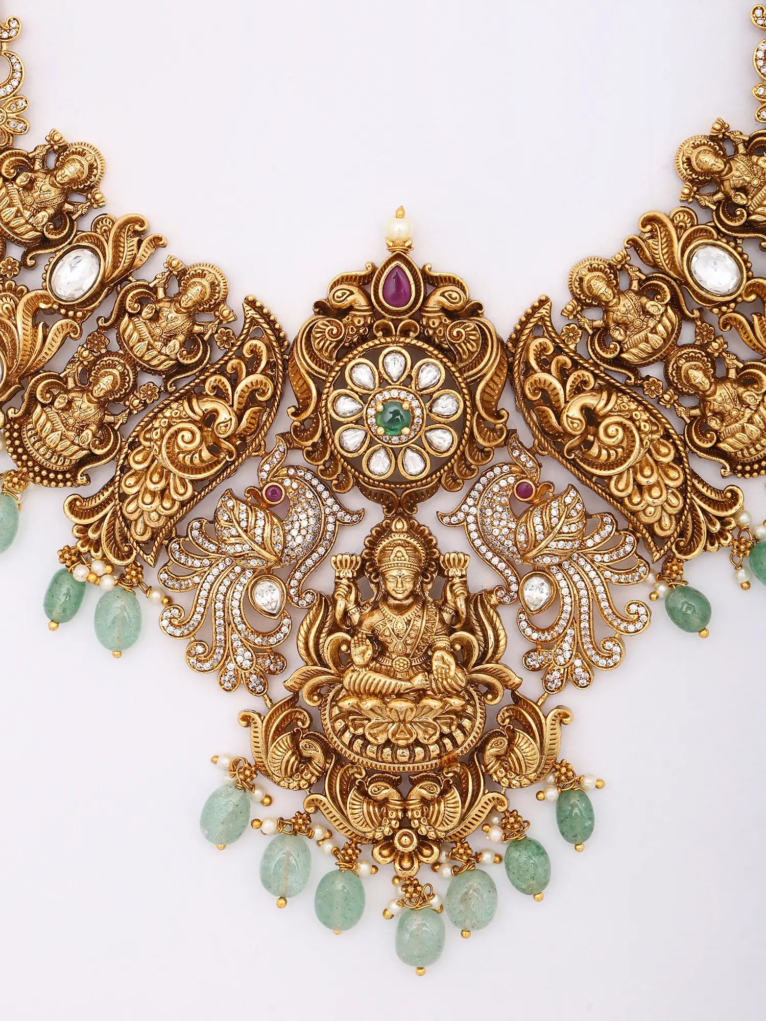 Goddess Lakshmi Moissanite Polki Kundan Studded Necklace Set with Earrings