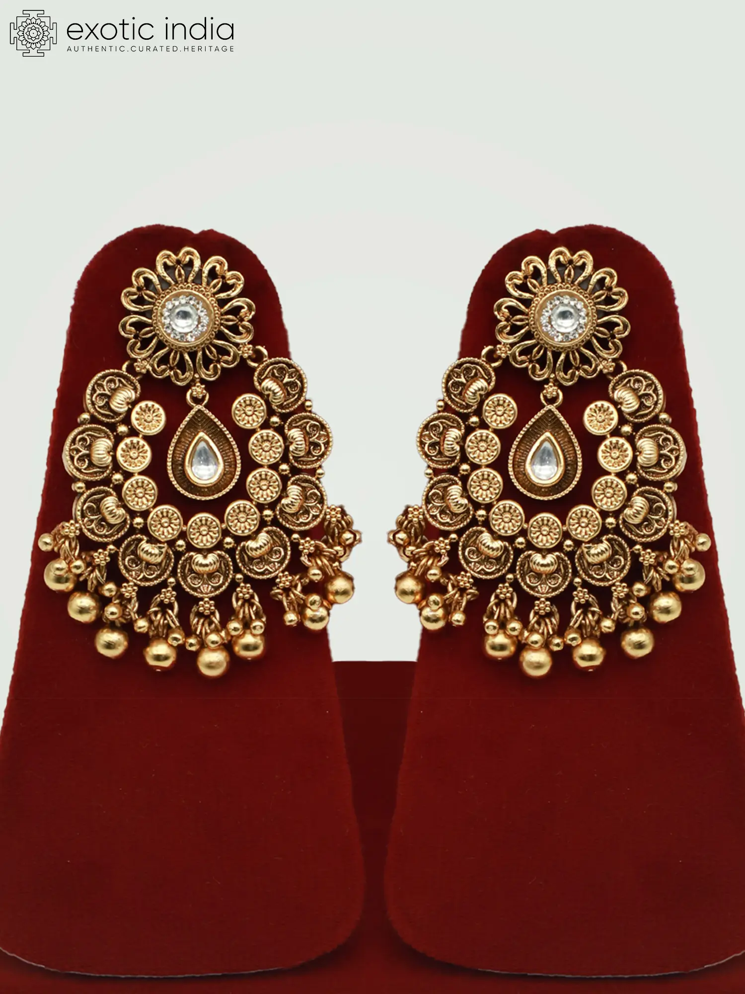 Brass Necklace Set With Beautiful Moissanite Kundan Stone And Earrings