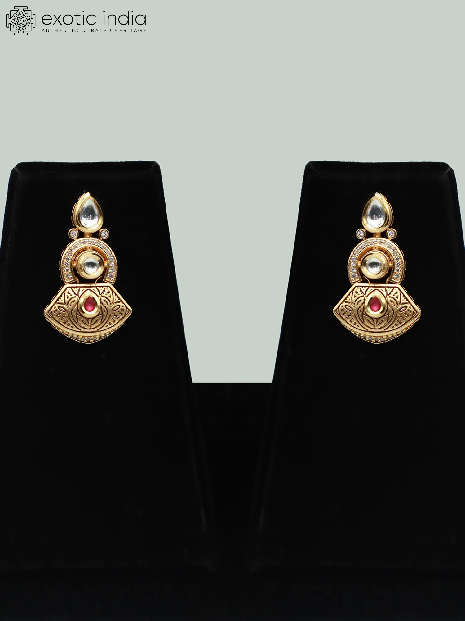 The necklace features a series of delicately carved floral elements. These intricate carvings bring an element of nature-inspired charm to the design. The design exudes a sense of traditional artistry. The complementary earrings echo the same design elements as the necklace, creating a cohesive and balanced look. Their petite size ensures comfortable wear while still making a statement. This set is more than just jewelry; it's an expression of your unique style and appreciation for fine craftsmanship. Whether you're attending a special occasion or looking to elevate your everyday look, this necklace and earrings set is the perfect choice.