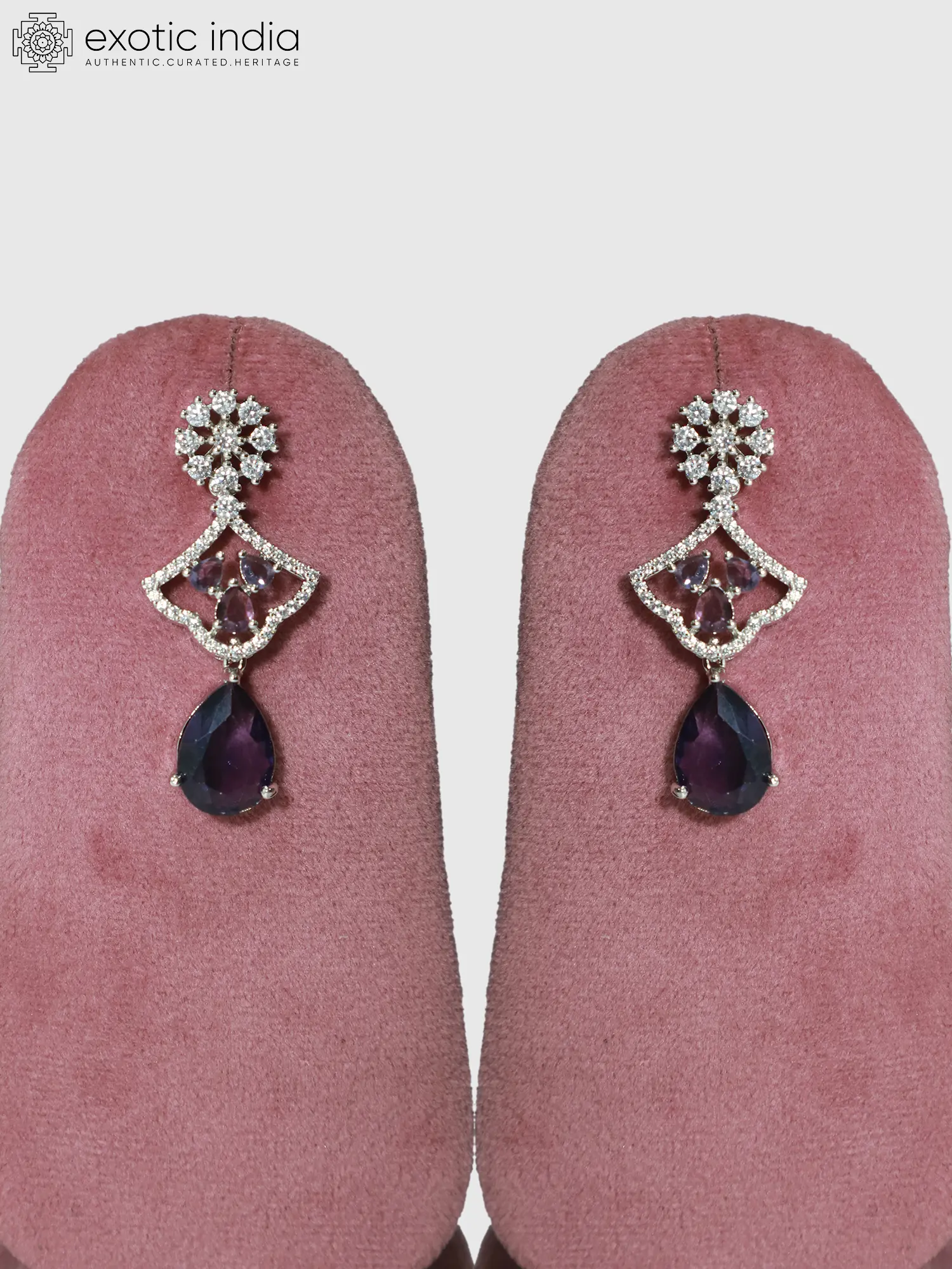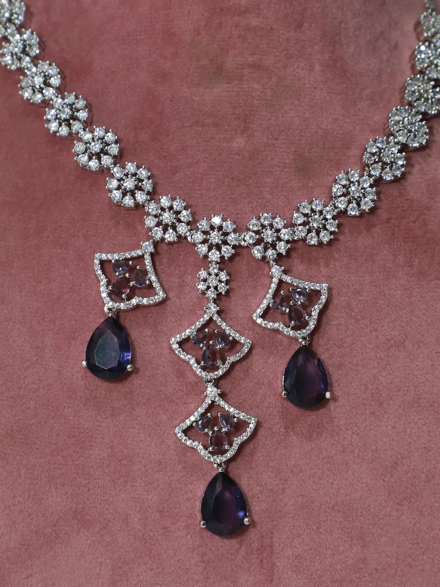Elegant Floral Design Long American Diamond Necklace Set With Earrings
