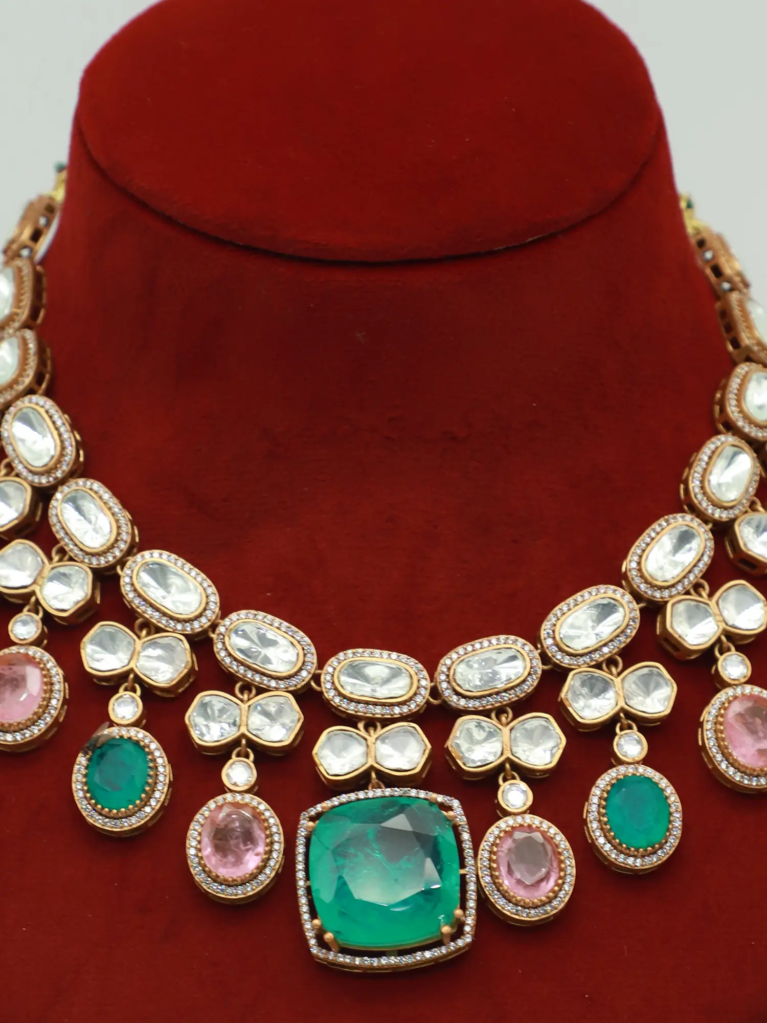Monalisa With Moissanite Kundan Stone Studded Necklace Set With Earrings