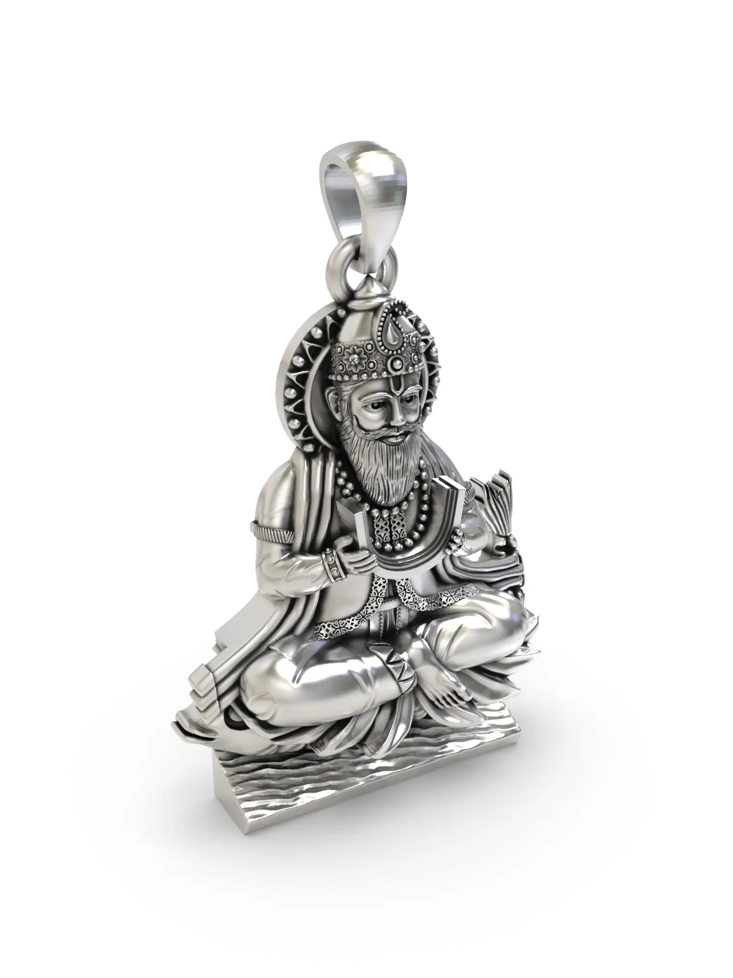 Trishul Sterling Silver Pendant with Dangling Rudraksh